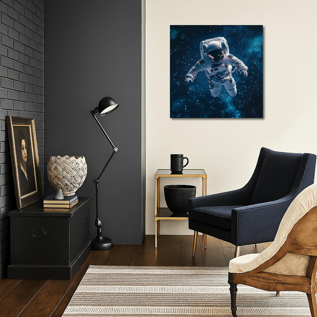 Space odyssey on your wall: a poster with an astronaut floating in the endless starry sky. A real masterpiece of wall art! See more from the collection: Space & Astronomy Art
