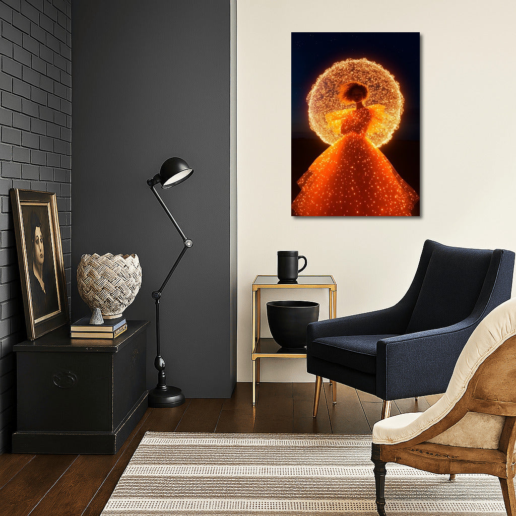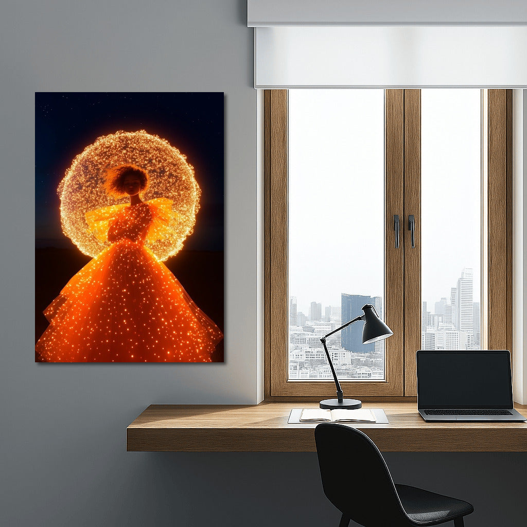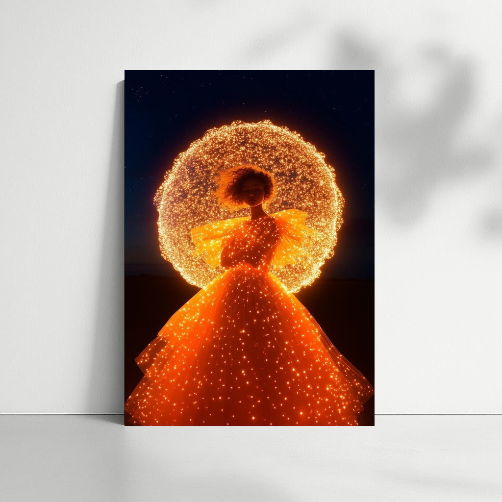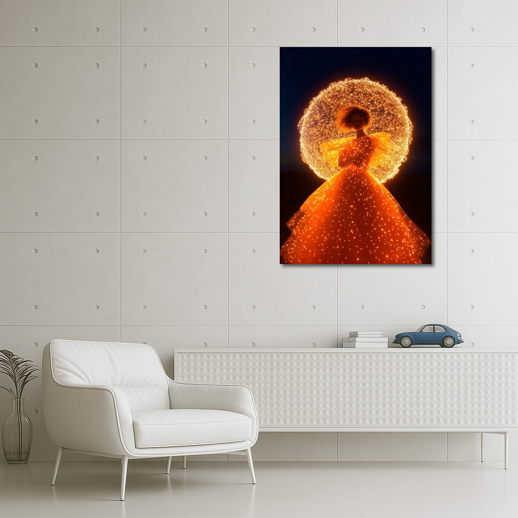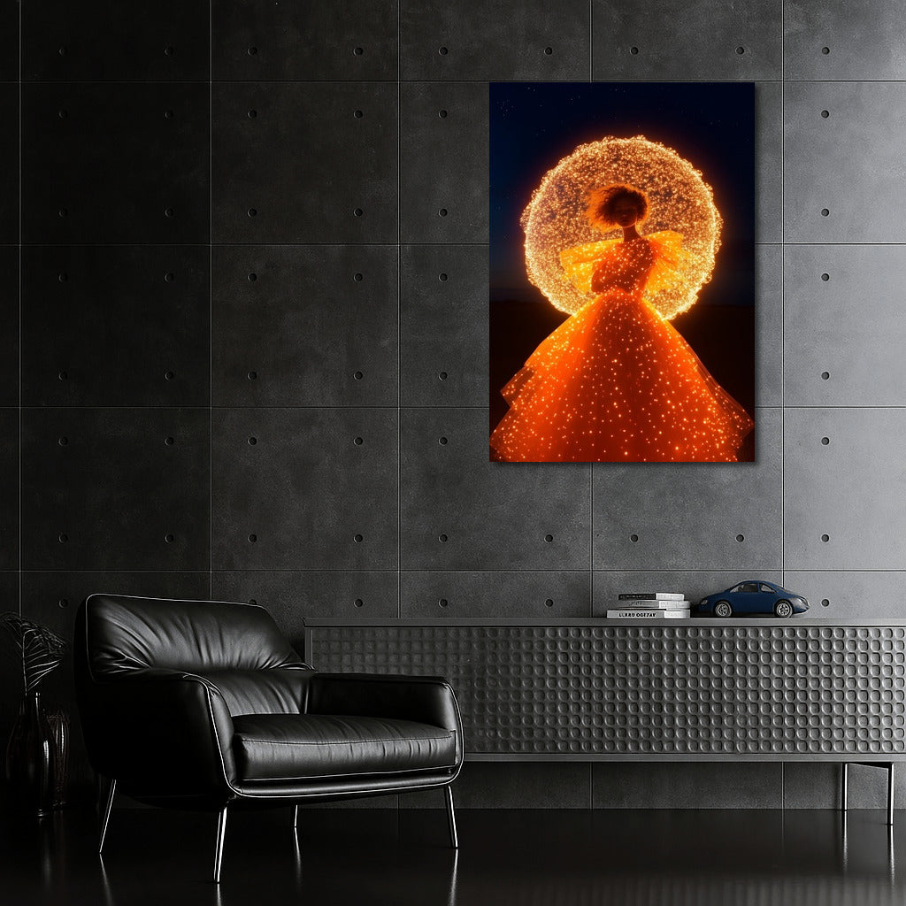 The painting embodies light and magic: a mysterious figure in the glow of stars. Will become a bright accent of your wall art! See more from the collection: Mixed Wall Art
