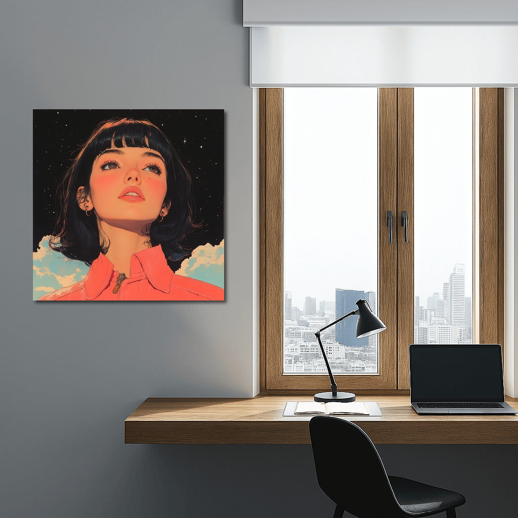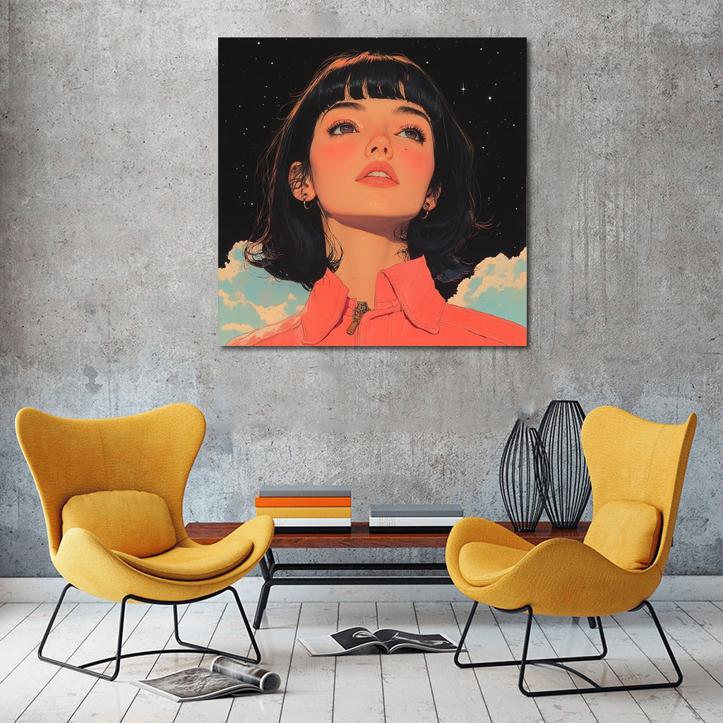 An image of an inspired girl reaching for the stars. Feel the magic and dream with this unique painting on your wall. See more from the collection: Anime & Manga genres Art