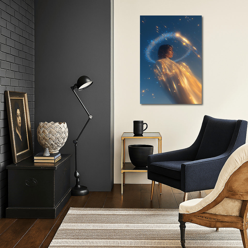 Mysterious painting: figure in starlight. This poster will be a magical accent to your wall art. See more from the collection: Mixed Wall Art