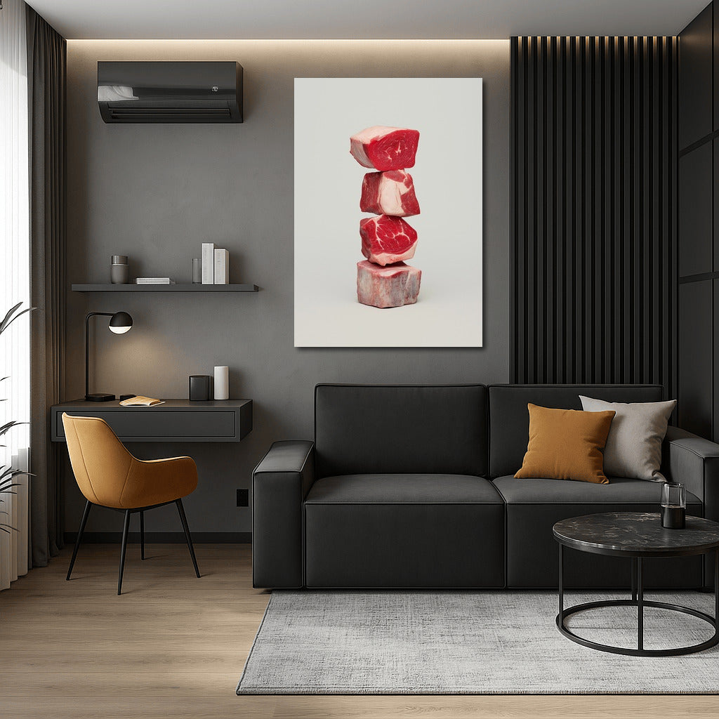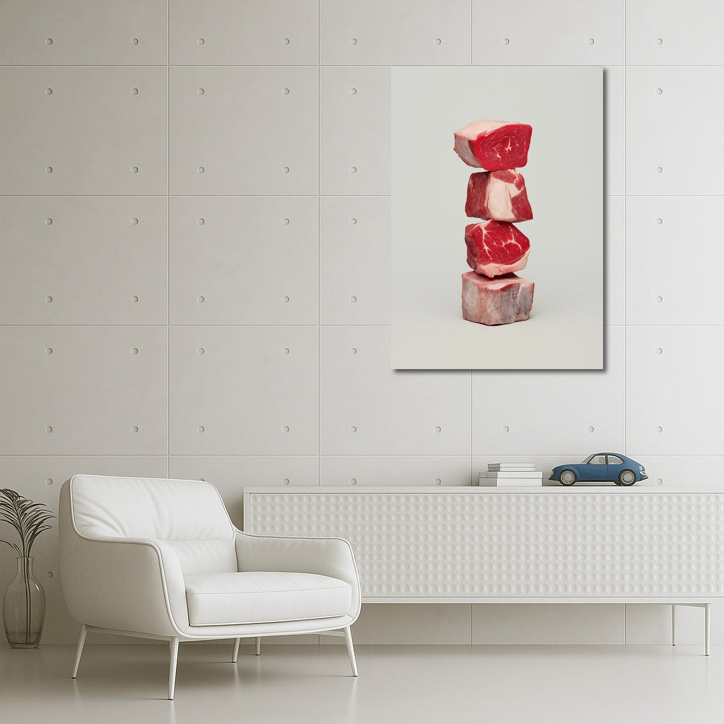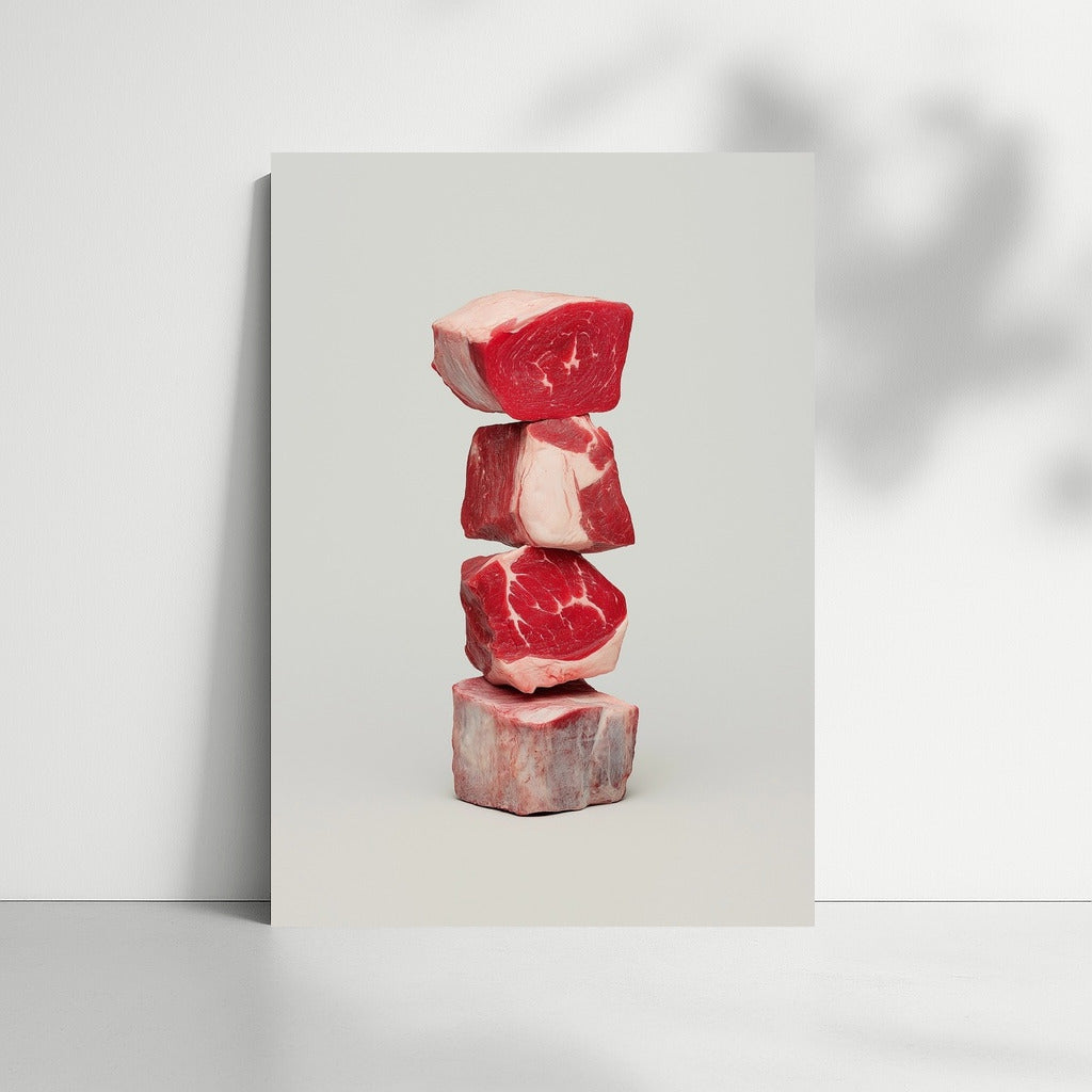 Meat Harmony Poster: Abstract wall art where balance and texture create an unusual take on still life. See more from the collection: Food Art