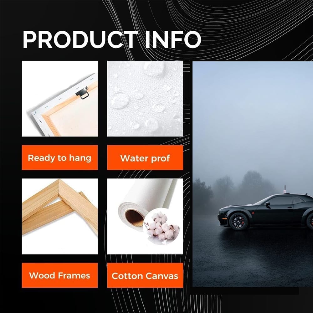 This poster is a real masterpiece for car lovers. Dodge in black smoke, like a brutal beast, ready to dash. The painting conveys power and energy that is impossible to ignore. This is wall art for those who breathe speed and roar of the engine. See more from the collection: Dodge Art