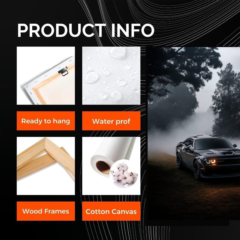 This painting is like a shot of adrenaline, capturing a muscular Dodge in the fog. Wall art that makes the heart beat faster. A poster for those who understand what true power is. See more from the collection: Dodge Art