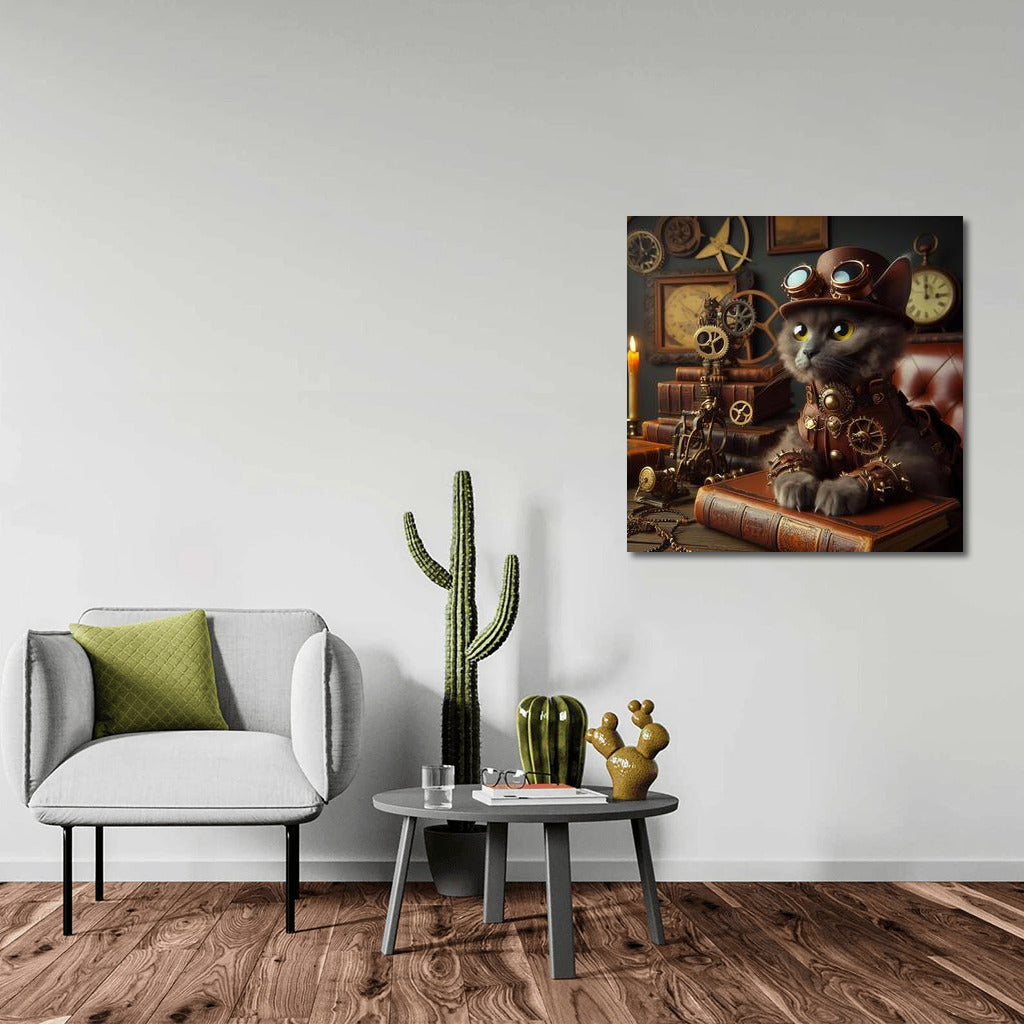 Steampunk Adventure with Devon Rex Cat: Clocks and Gears Wall Art