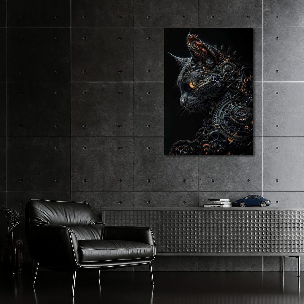 Dive into the world of Steampunk: a mechanical cat in a fascinating interweaving of gears. Ideal wall art. See more from the collection: Steampunk Art