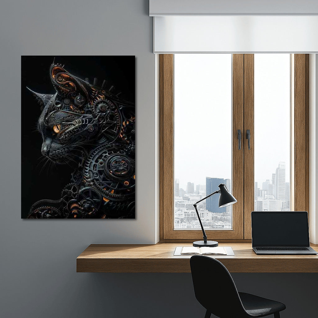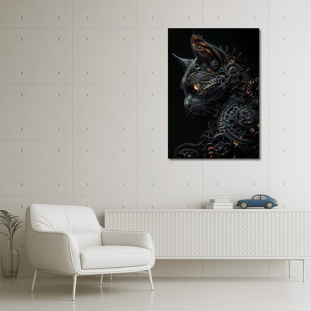 Steampunk Mechanical Cat: Fascinating Interweaving of Gears Wall Art