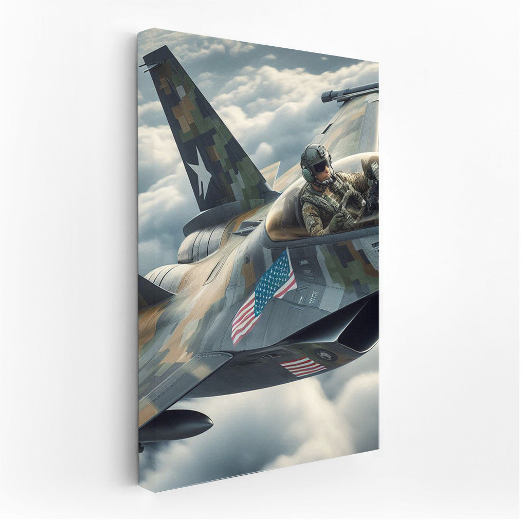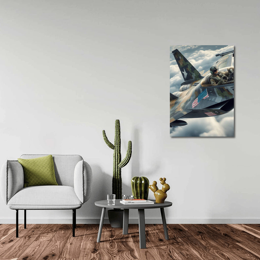 Power and freedom in one frame: a poster with a military aircraft soaring among the clouds. Wall art that fills you with the energy of flight! See more from the collection: Military & Veterans Art