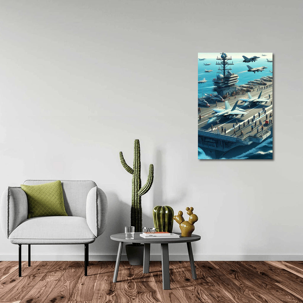 Steel Wings Over the Ocean: Military Aircraft and Aircraft Carrier Wall Art