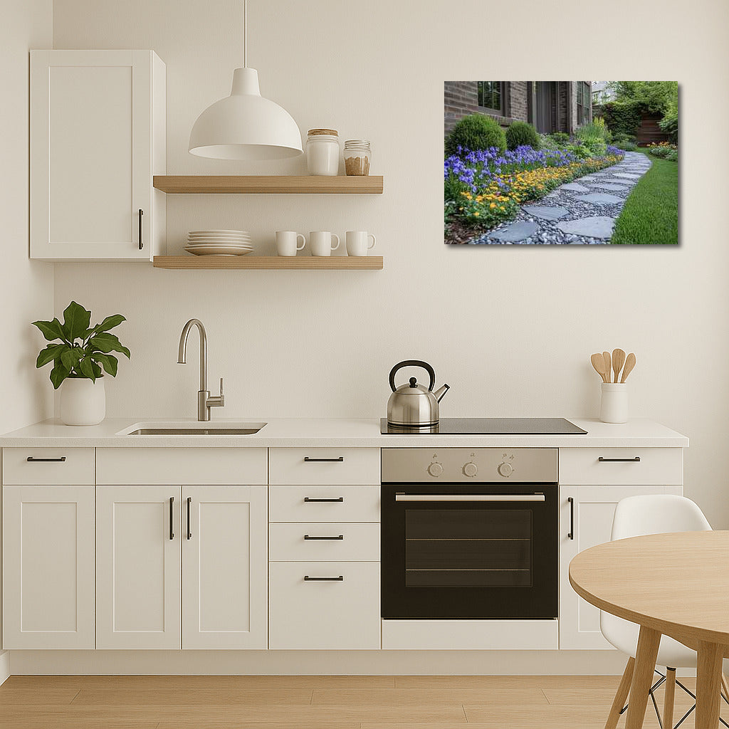 Stone Path among Irises and Calendulas: Flower Symphony Wall Art
