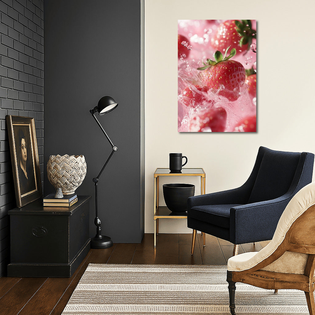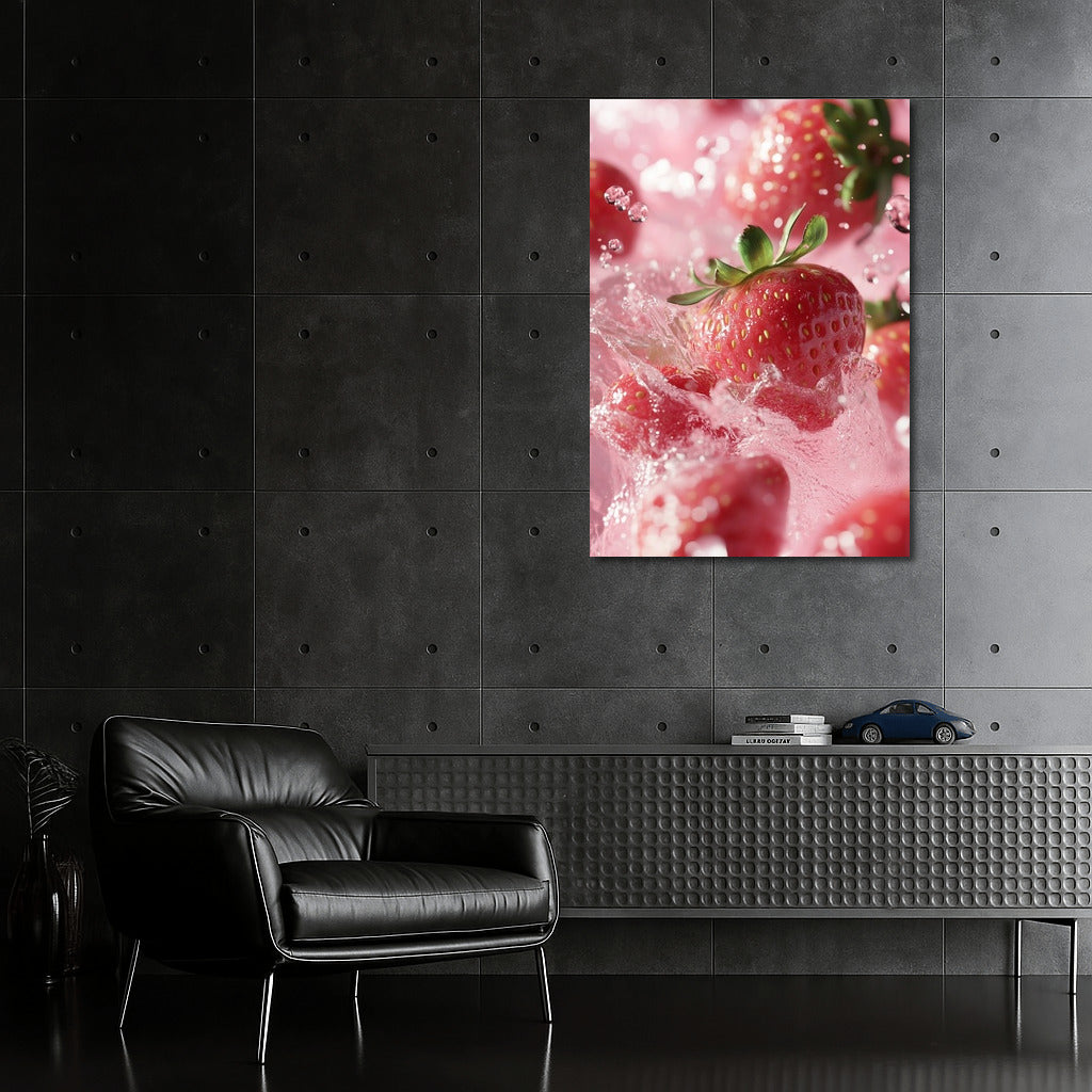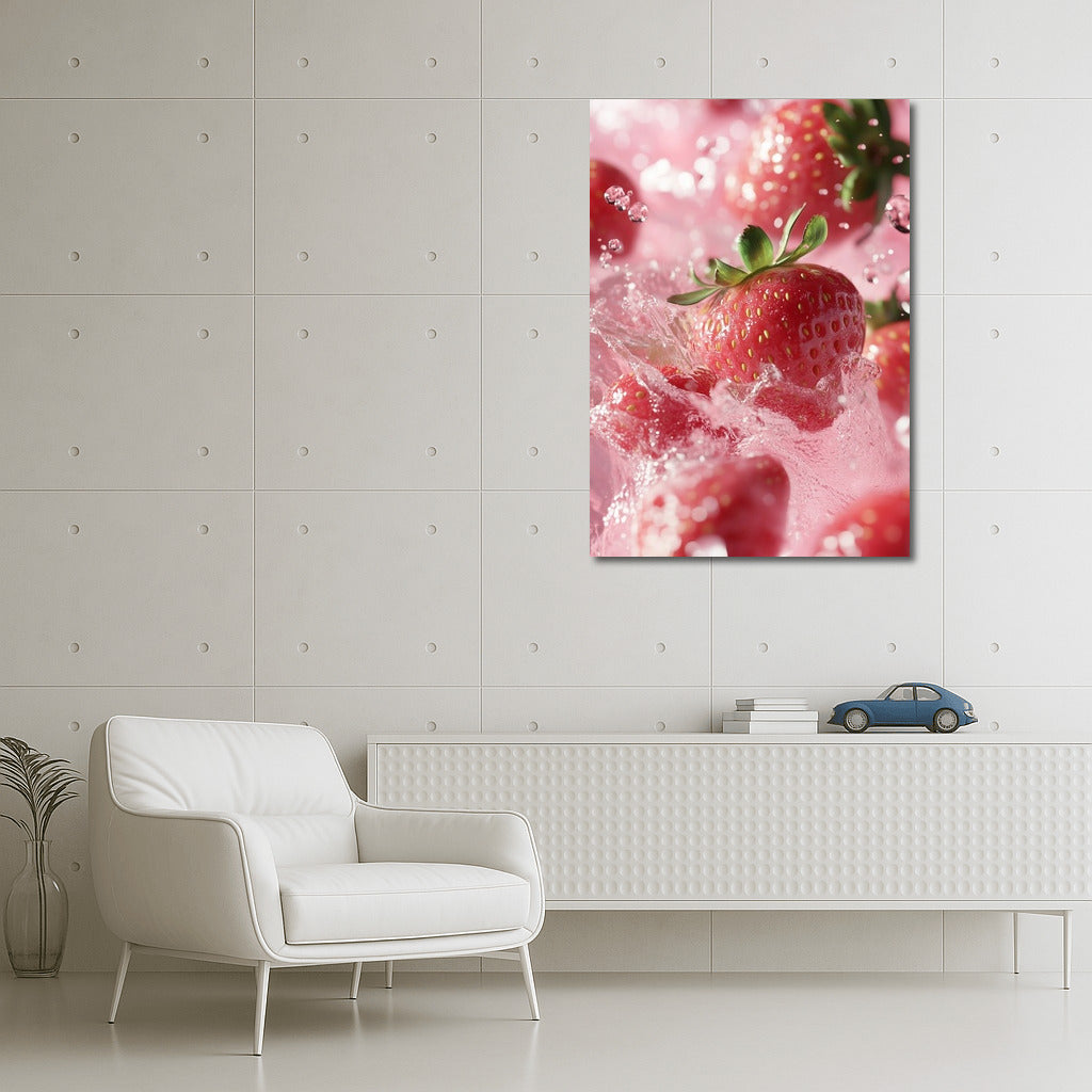 Juicy strawberries splashed with pink in this poster transform wall art into a vibrant explosion of freshness and color. See more from the collection: Food Art