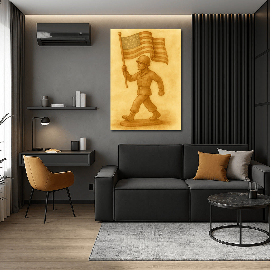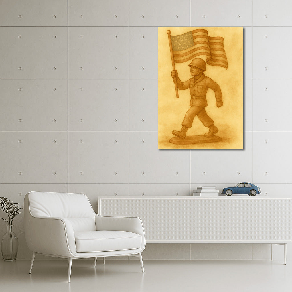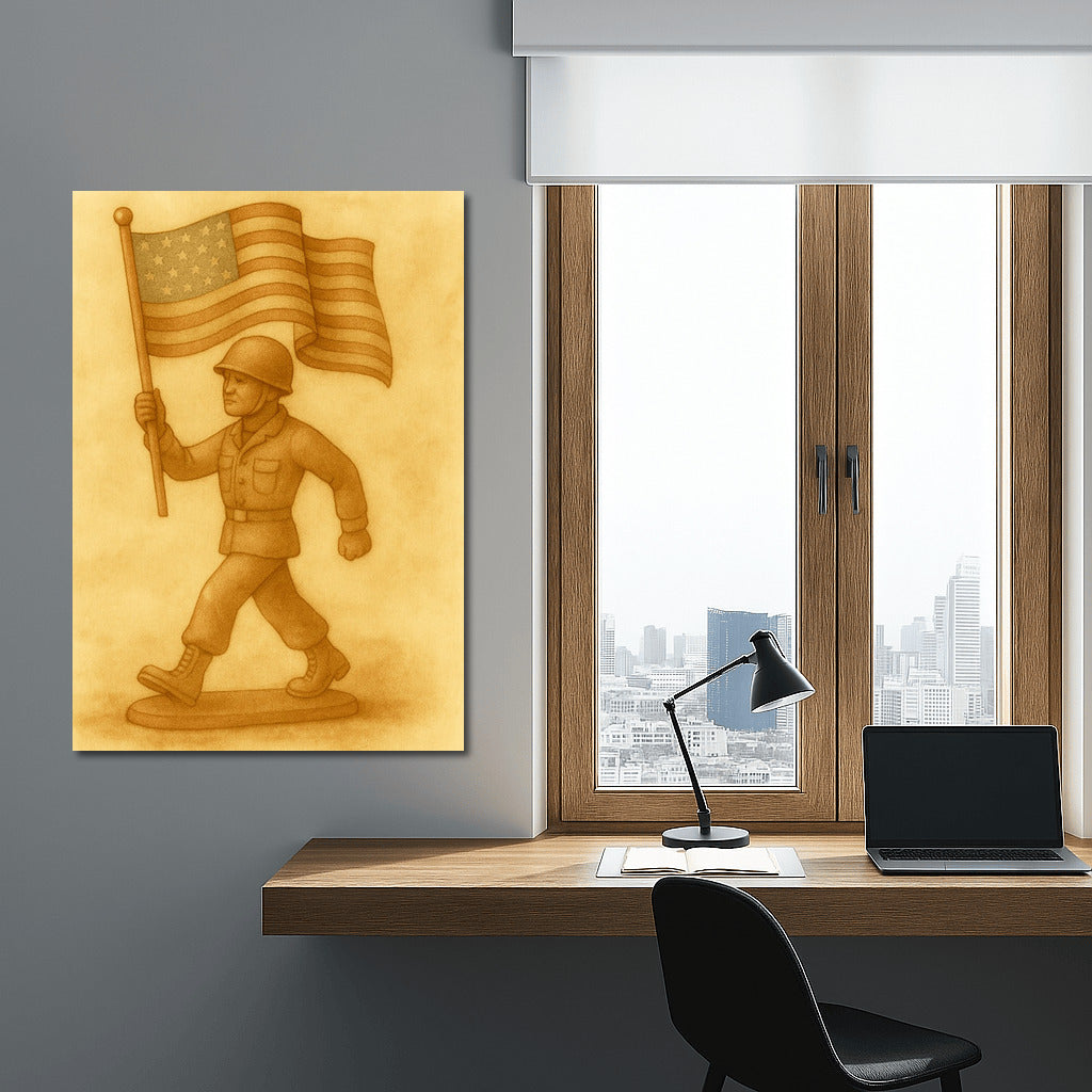 Strength and Honor: Soldier with a Banner - Military Veterans Wall Art