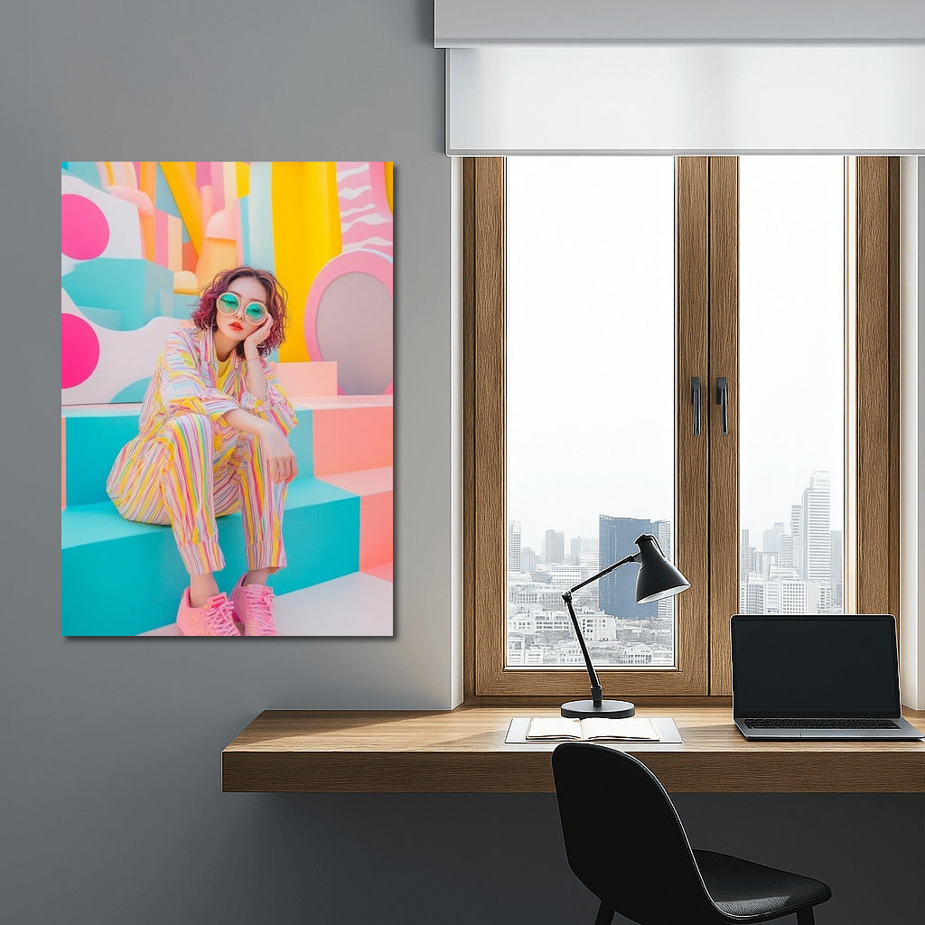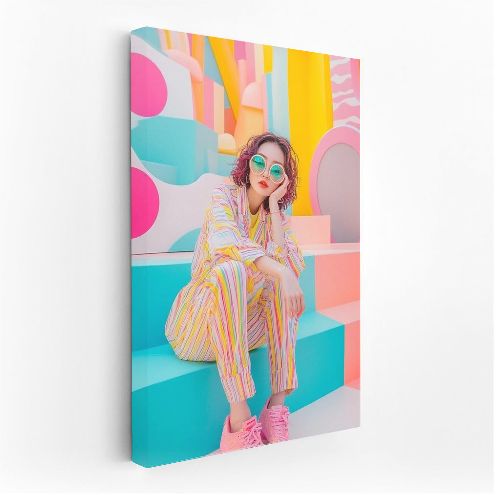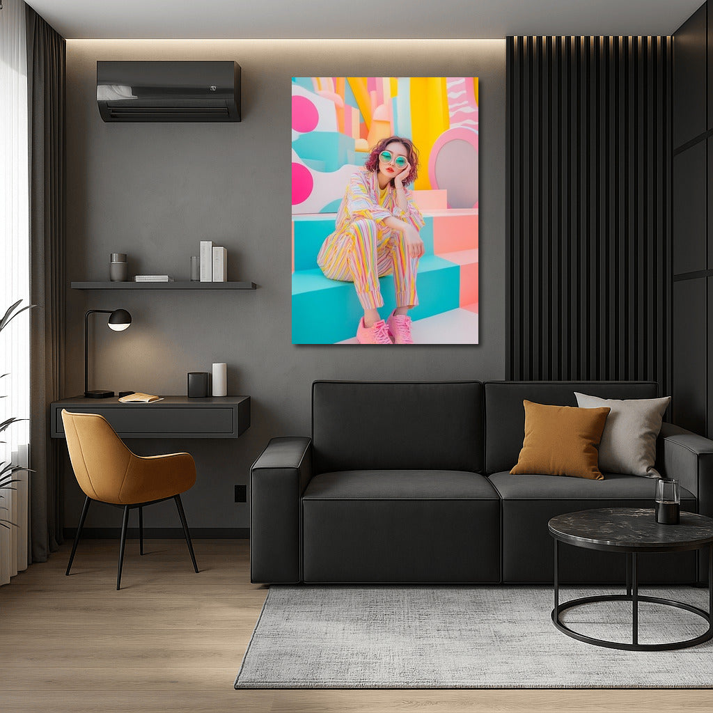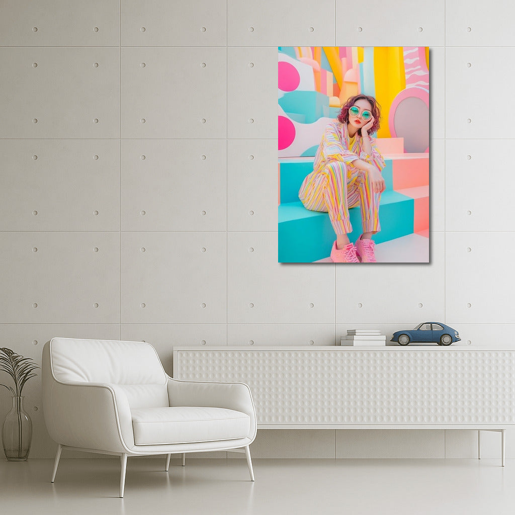 Abstract Palette: Bright stripes and a stylish character come to life on this poster, adding a modern twist to wall art. See more from the collection: Fashion Art
