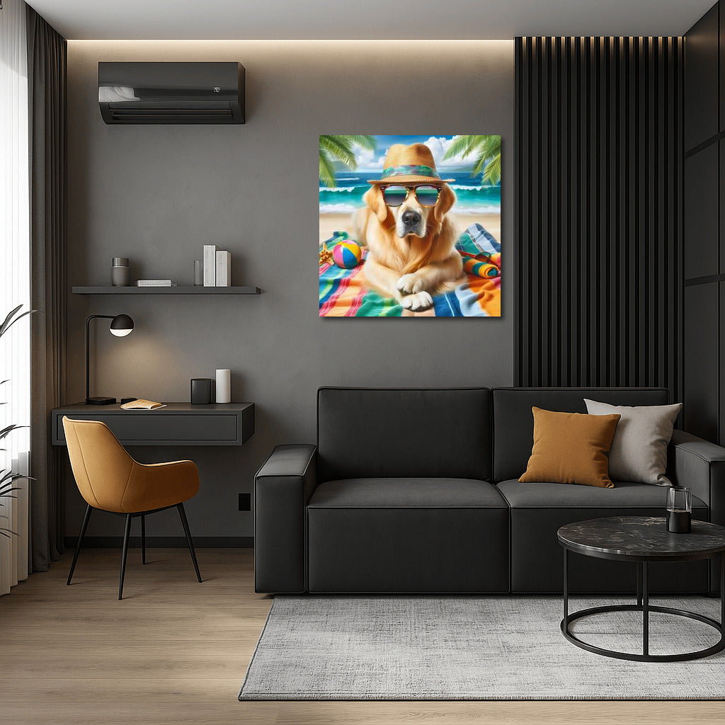 Stylish Beach Vibe: Fashionable Dog on the Summer Beach Wall Art