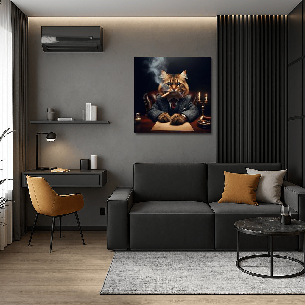 Stylish Boss Cat with Cigar: Elegance and Power on Your Wall Wall Art
