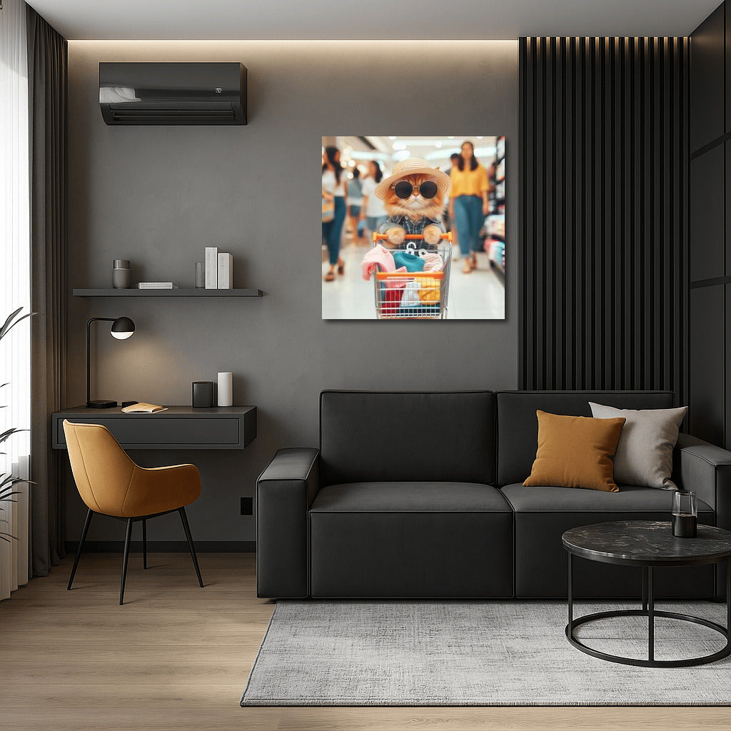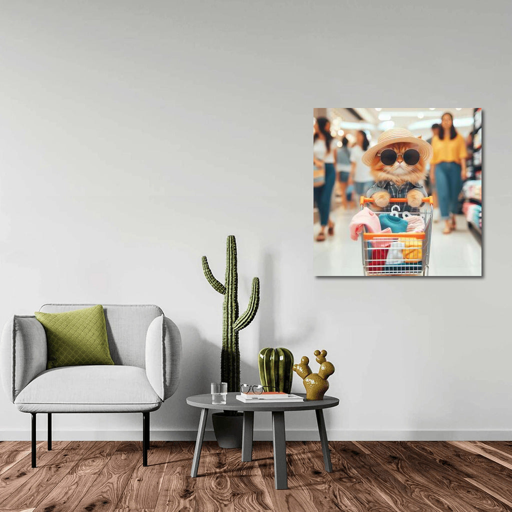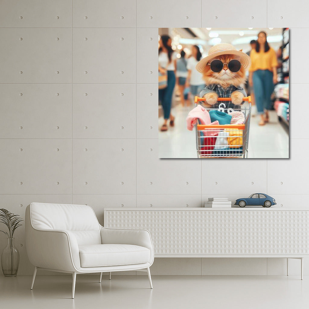 Stylish Cat in the Hat: Shopping at the Mall Wall Art
