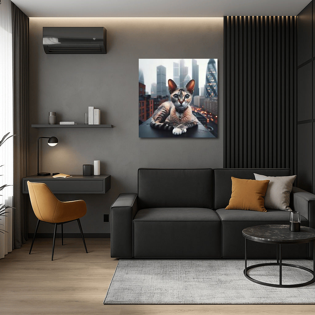 Stylish Devon Rex on a City Roof: Urban Charm Wall Art