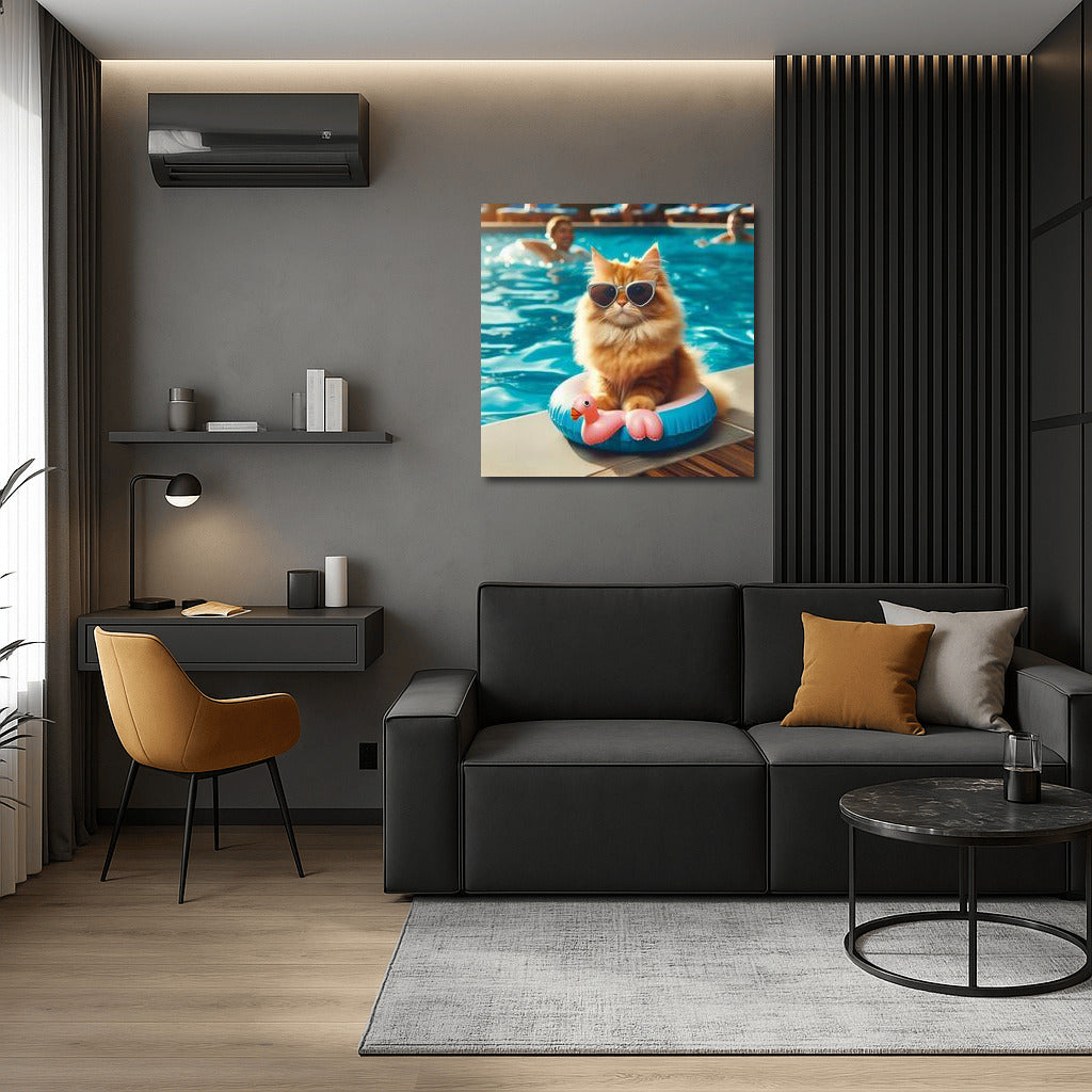 Stylish Pool Cat: Summer Party 2 Wall Art