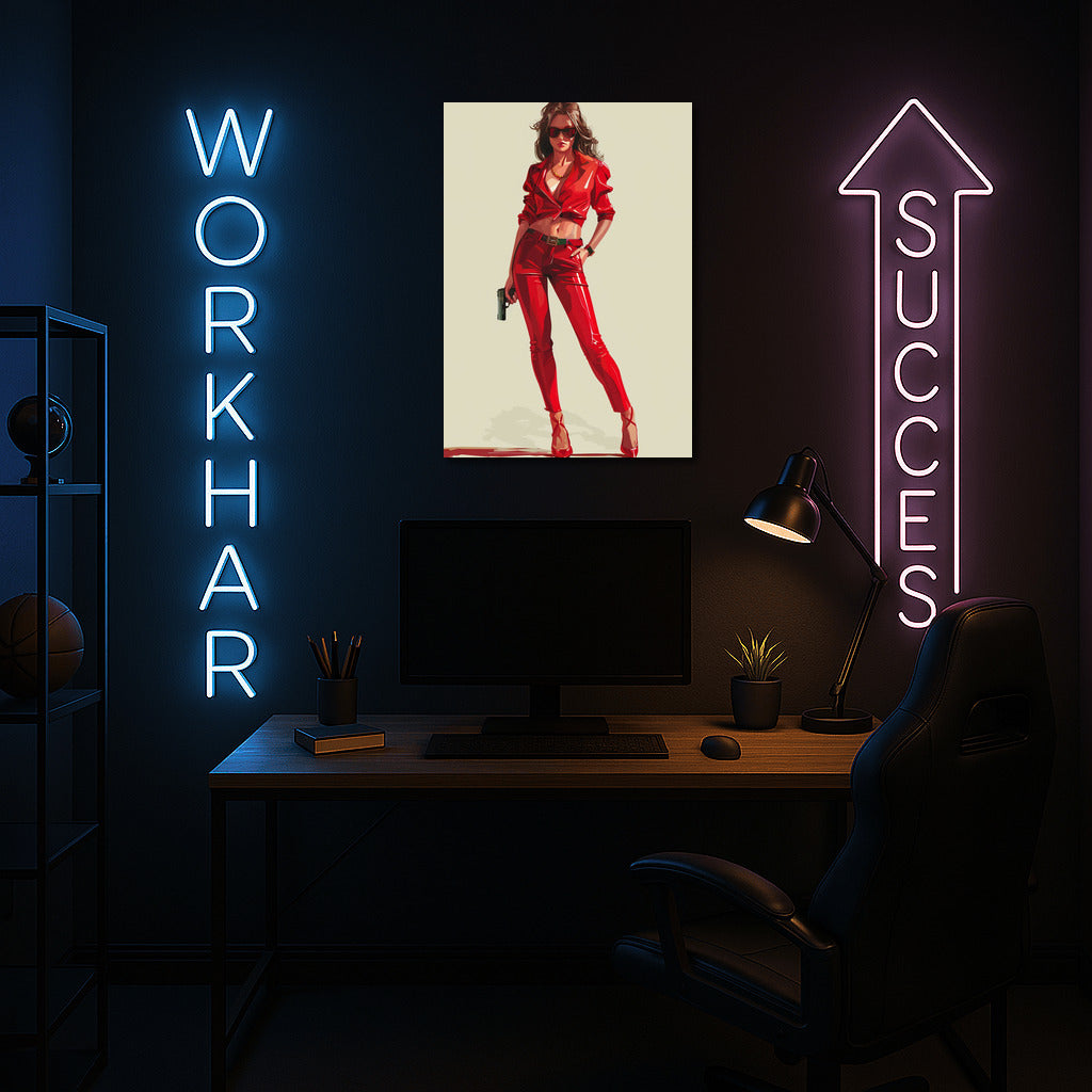 Spectacular painting: stylish young mafioso in red. The poster will become a bright accent in your interior. See more from the collection: Wall Art with Women