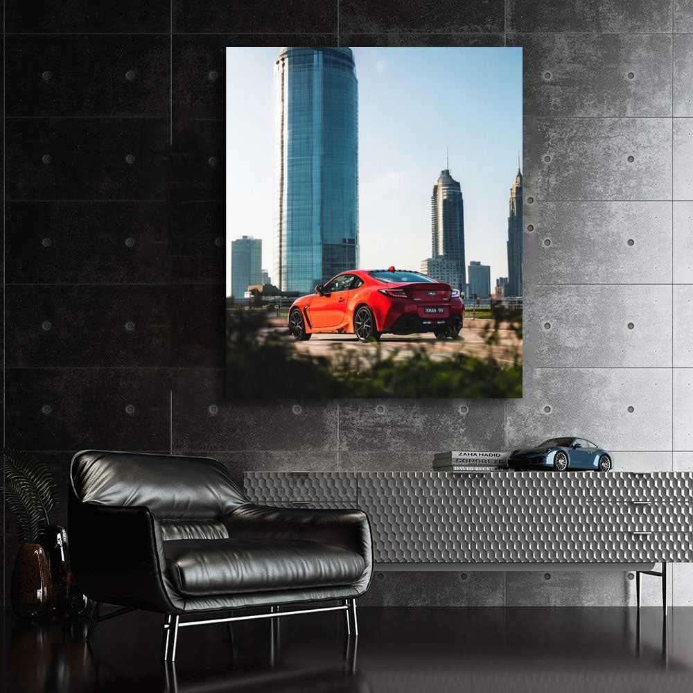 Subaru BRZ - Glass Building Backdrop - Sporty and Sleek Wall Art