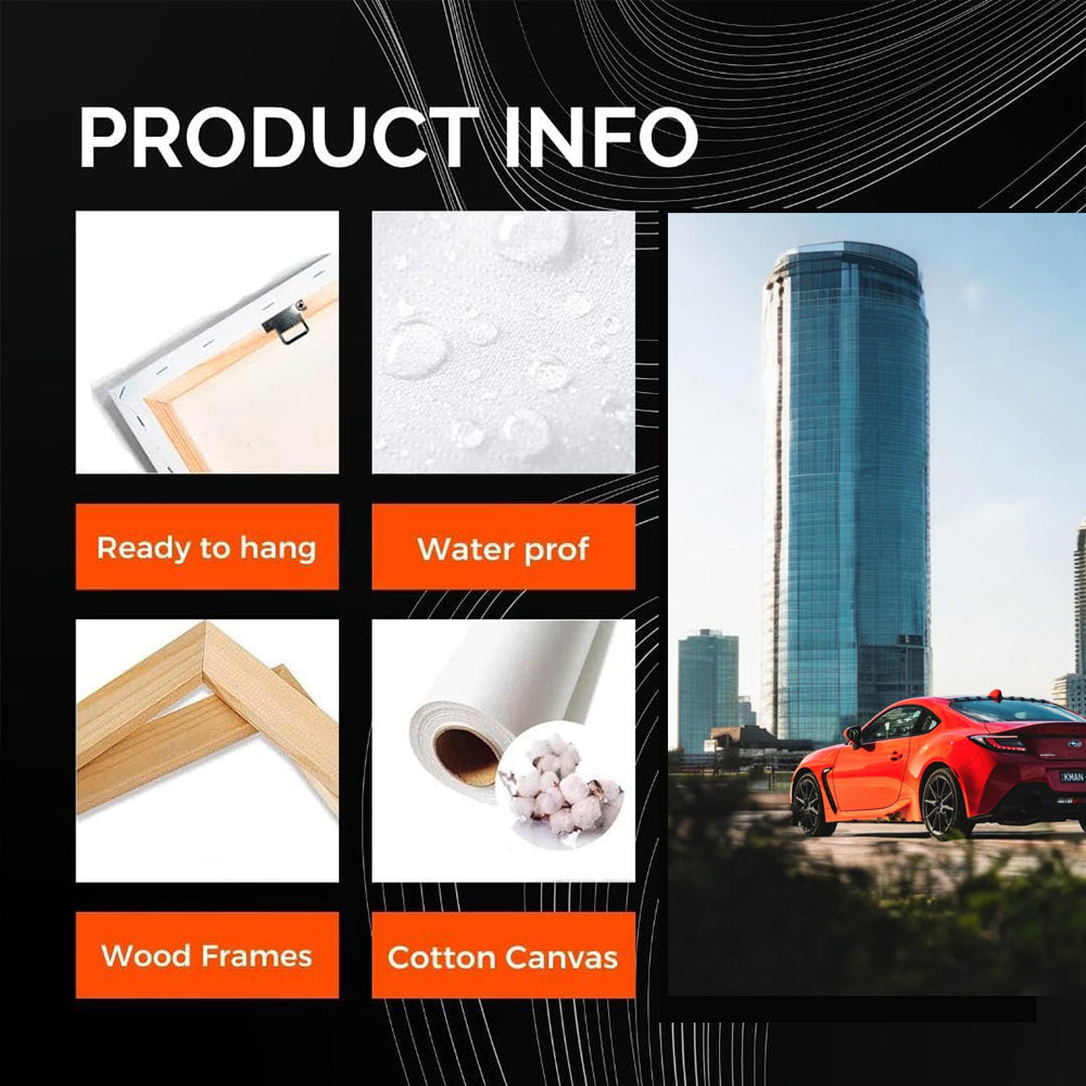 Hey bro, check out this poster of a Subaru BRZ in front of a glass building. This wall art is just fire! Having this painting on the wall is like a turbine for your mood. The car looks like it’s ready to break into the future. Stylish, bold, powerful! See more from the collection: Subaru Art