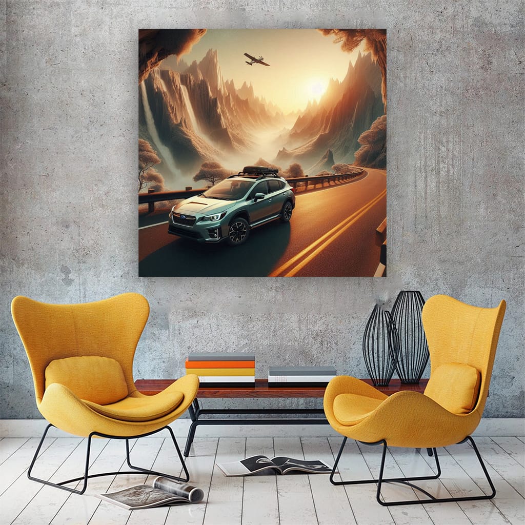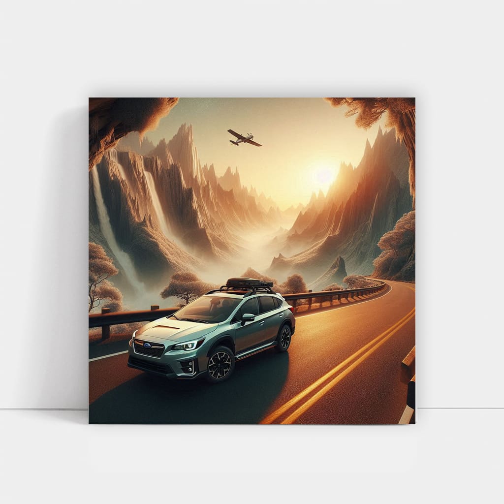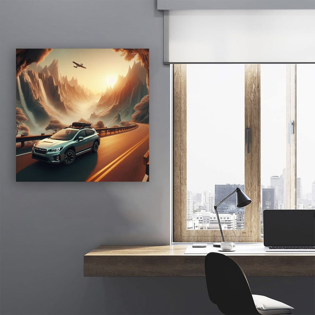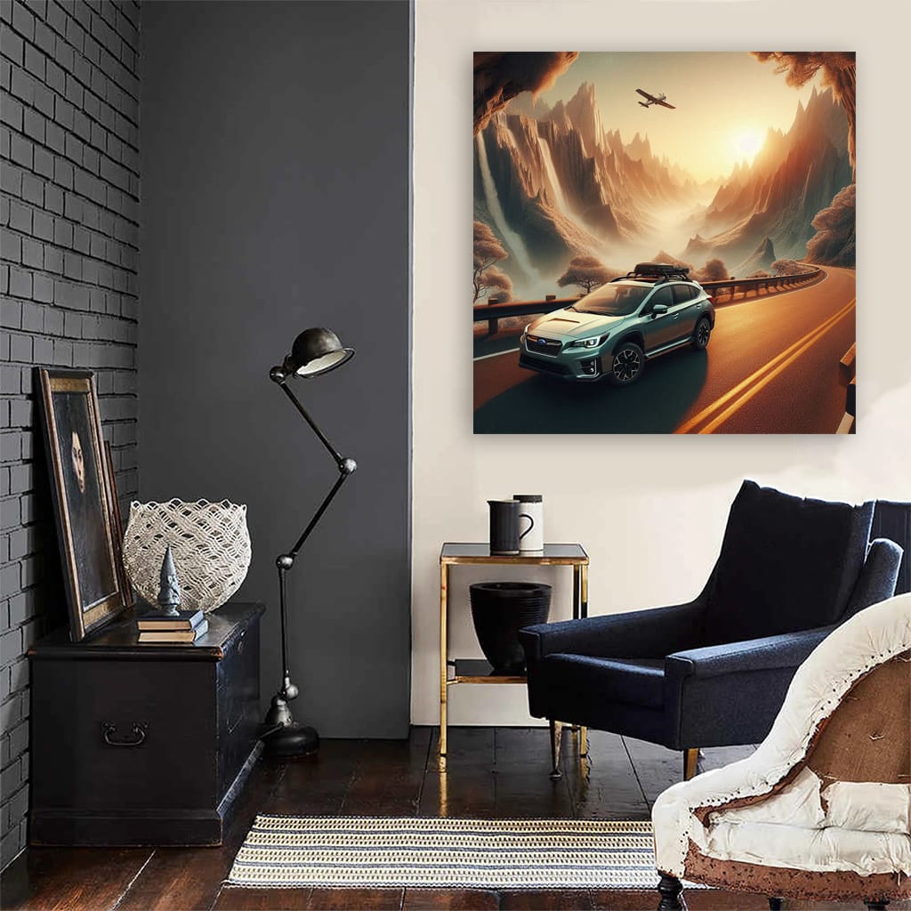 What a poster! The painting with the Subaru Crosstrek in the park is just a bomb. An explosive mix of wild nature and daring iron. Wall art for those who are in the know. This car against the backdrop of a national park is a must-have for any car fan who knows a thing or two about real driving. See more from the collection: Subaru Art