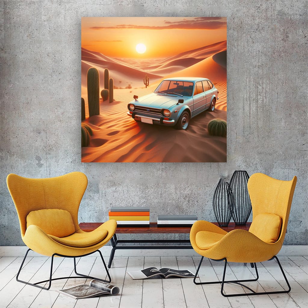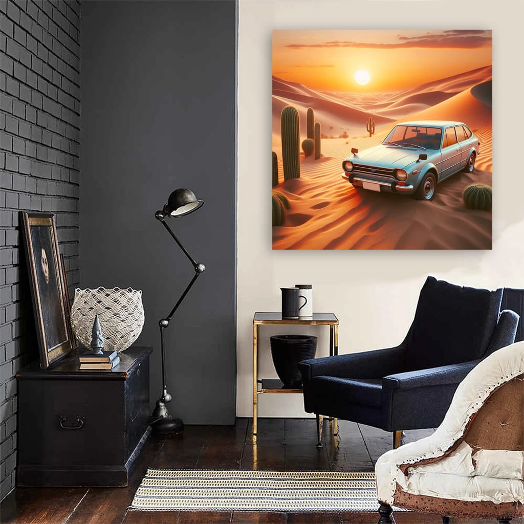 Subaru Vintage Foz in Desert - Classic Style and Adventure Wall Art