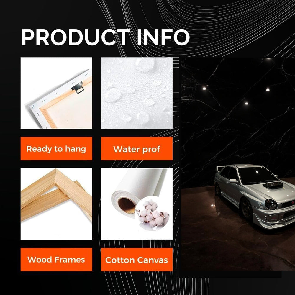 This painting is a mind-blowing experience for any tuning fan! The Subaru WRX, as if carved from black marble, looks like a fighting machine from a drift dream. Wall art for true connoisseurs of speed and aggression. Hang it on the wall and enjoy every detail! See more from the collection: Subaru Art