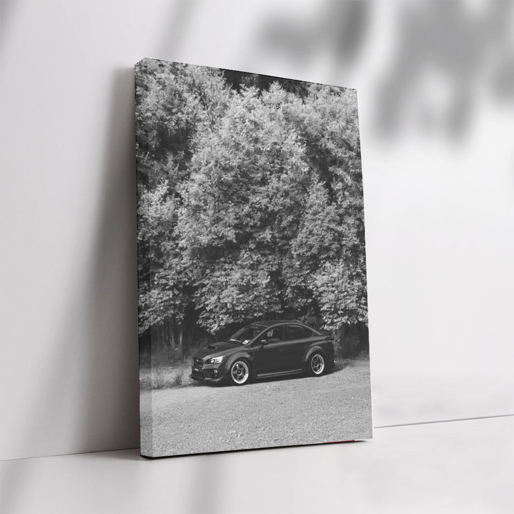 Subaru WRX Black & White in Nature - Rugged Performance Wall Art