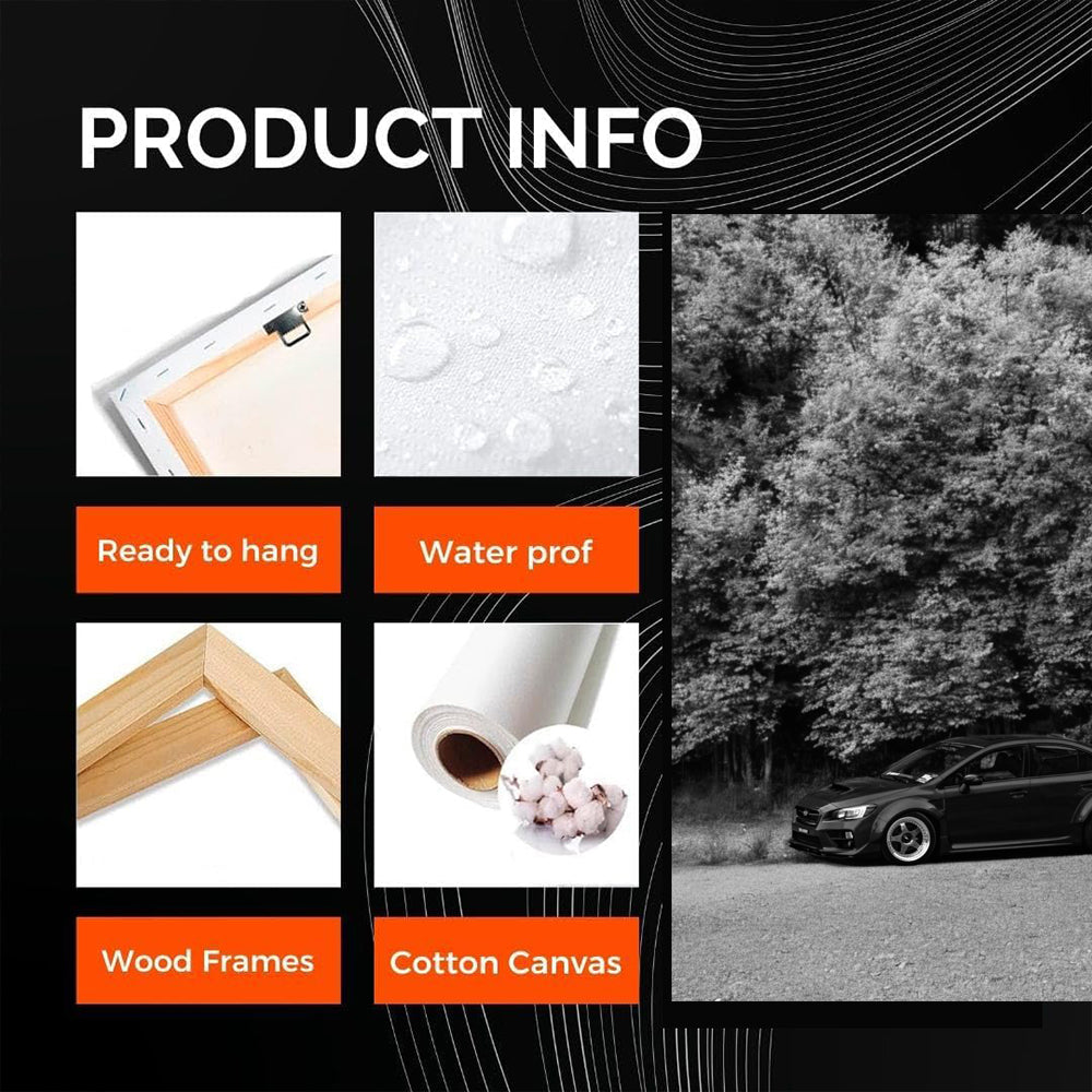 This wall art is just the bomb! A poster with a Subaru WRX against the background of nature is a real treasure for car fans. The black and white painting conveys all the power and audacity of this car. This art will fit perfectly in a garage or a man cave. See more from the collection: Subaru Art