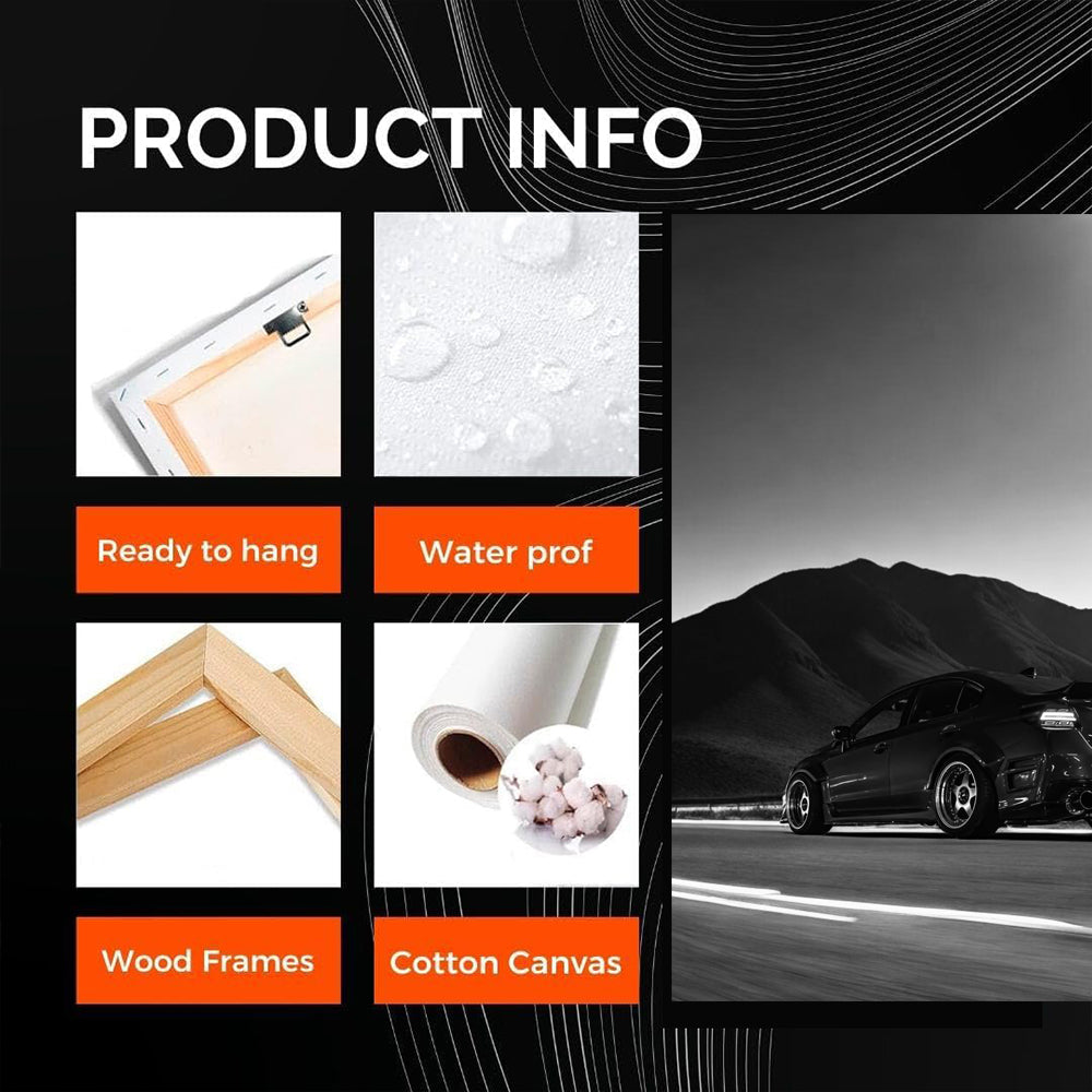 This painting is a must-have for any car fan’s garage. The black and white Subaru WRX poster is like wall art that embodies power and speed. It screams about wild nature and adrenaline, just like the roar of the engine under the hood. See more from the collection: Subaru Art