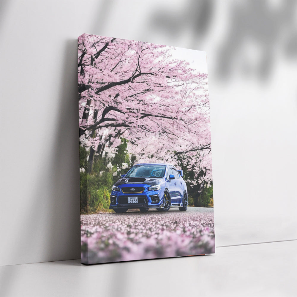 Subaru WRX in Blue Beneath Sakura - Sporty Elegance Wall Art