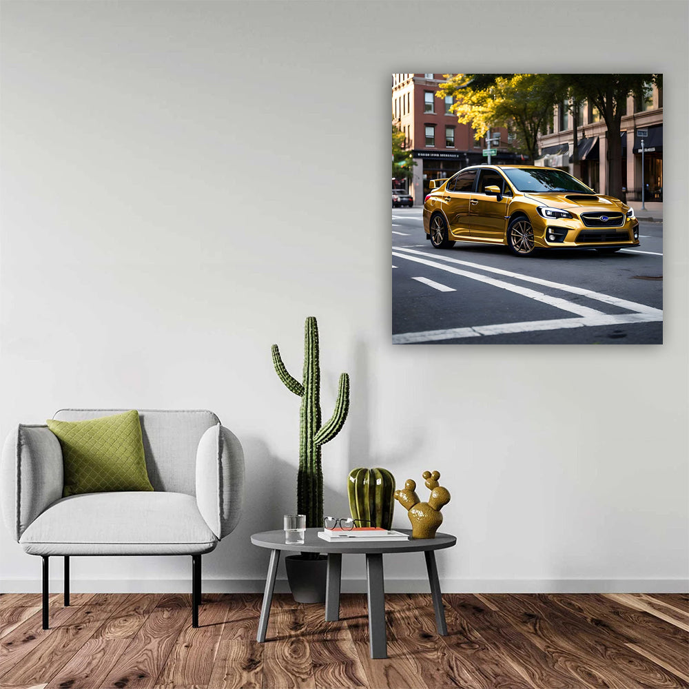 Hey bro, check out this poster of a gold Subaru WRX in the heart of Washington. This car is a blast! It's like wall art for real car lovers. It's shiny as a car wash and ready to tear up the pavement. See more from the collection: Subaru Art