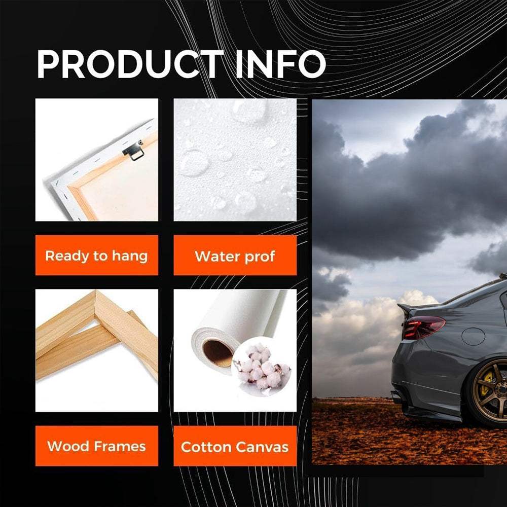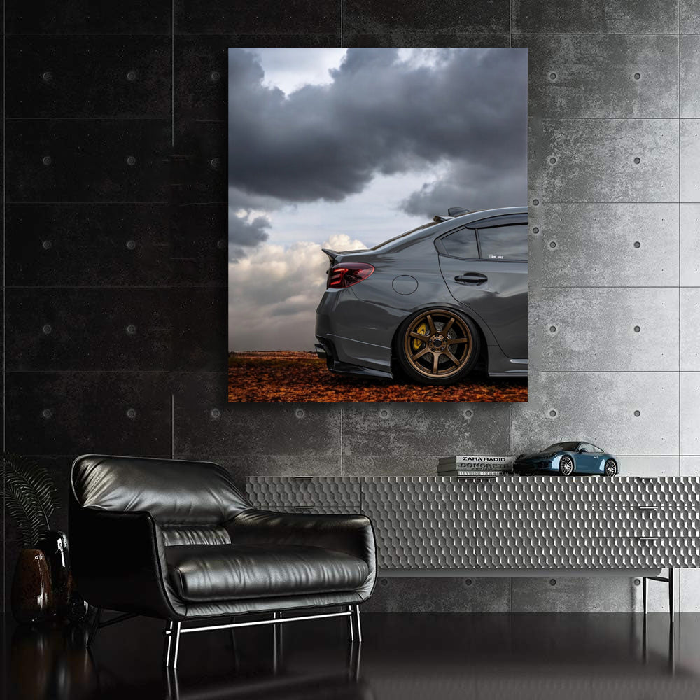 This poster is a bomb for any car fan! Subaru WRX, like the coolest street racer, against the backdrop of a cloudy autumn. The adrenaline-charged painting will fit perfectly into a garage or man-kawa. Wall art that excites the blood of every car fan! See more from the collection: Subaru Art