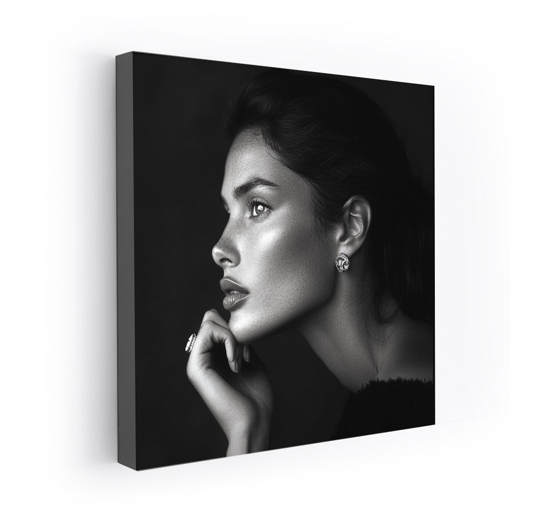 Elegant black and white portrait: a neutral image that inspires. Elegant wall art for a stylish interior. See more from the collection: Black and White Art