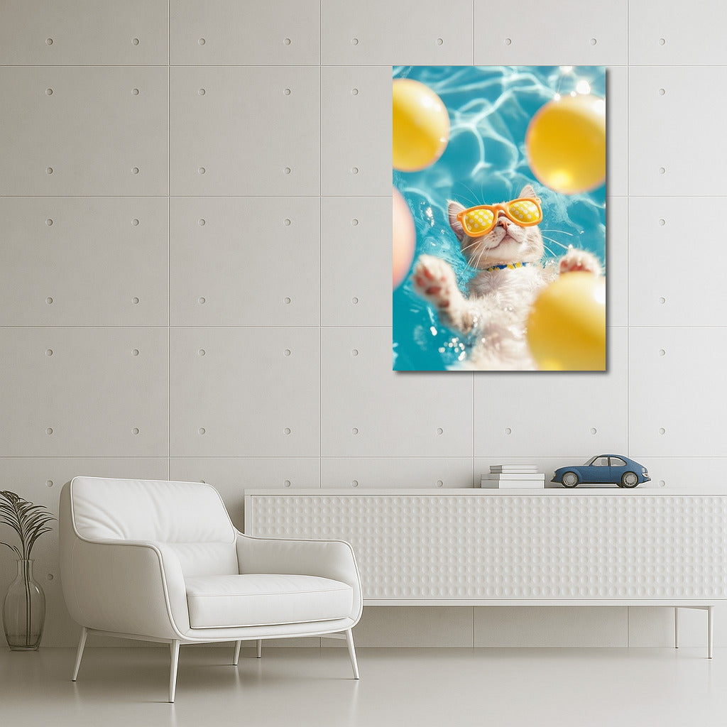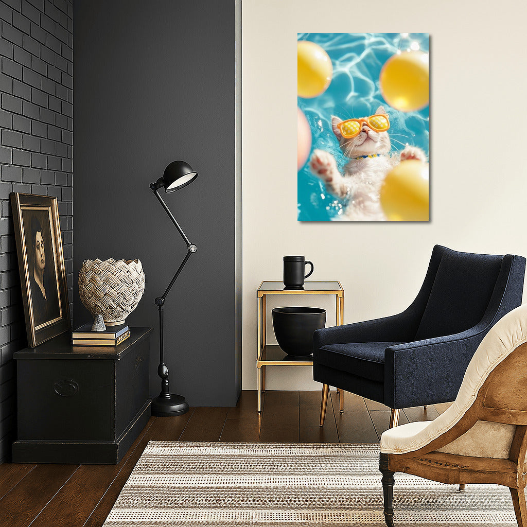 Sunny cat with glasses enjoying summer! Add playful wall art with a carefree vibe to your interior. See more from the collection: Animals Art