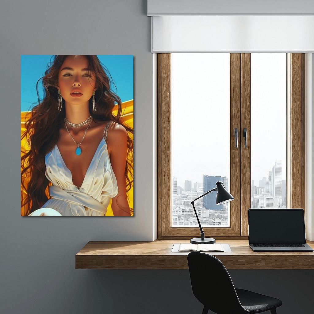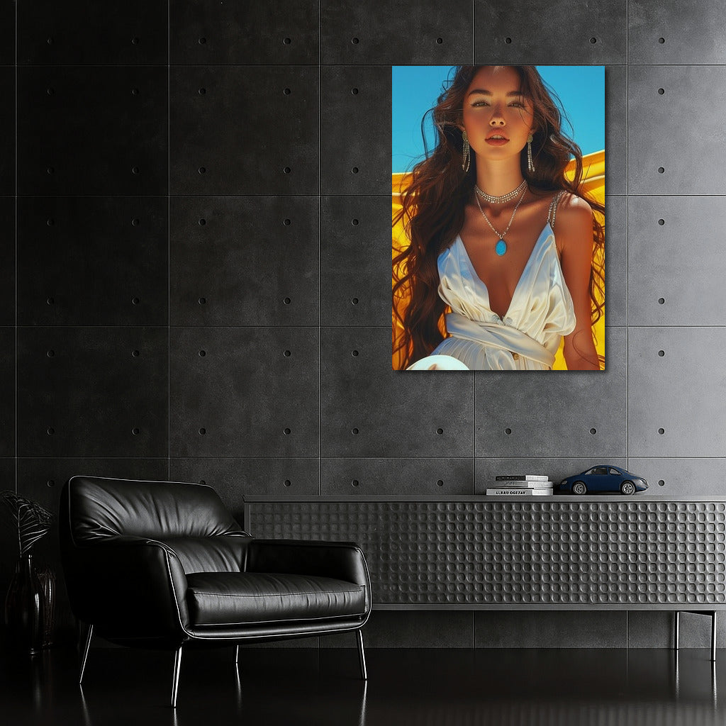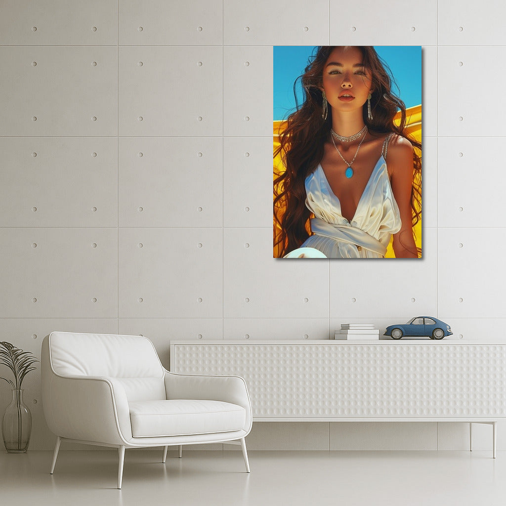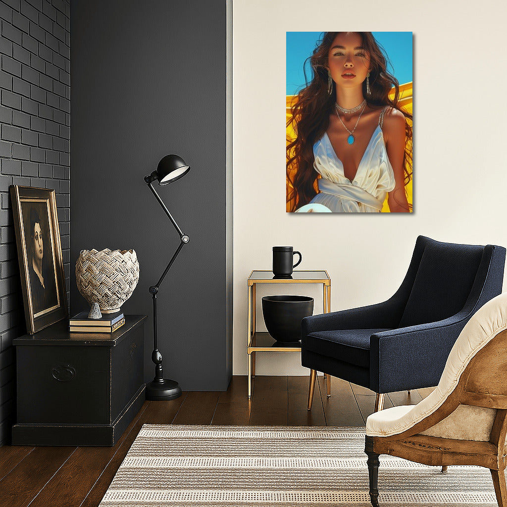 An elegant painting: a graceful figure on a bright background. A perfect poster for your space, inspired by the summer mood. See more from the collection: Wall Art with Women