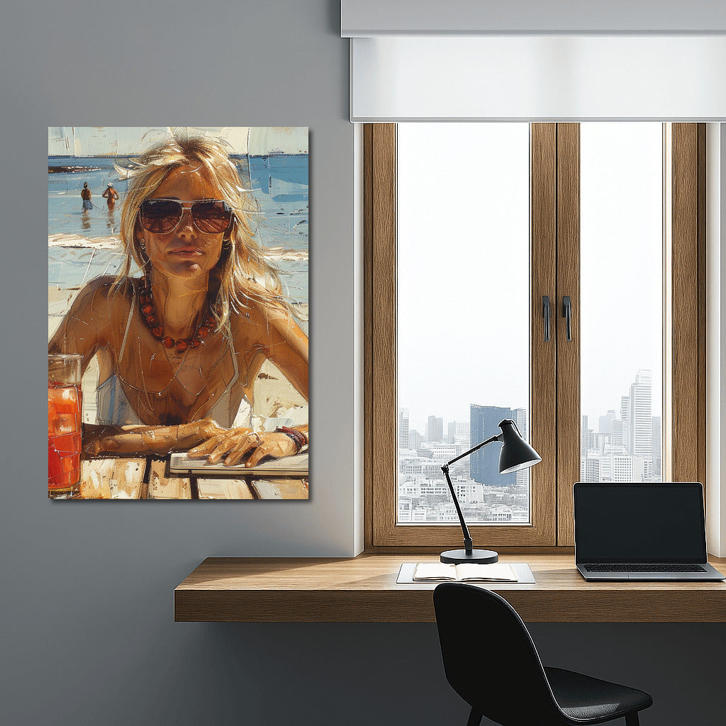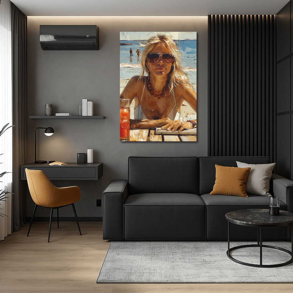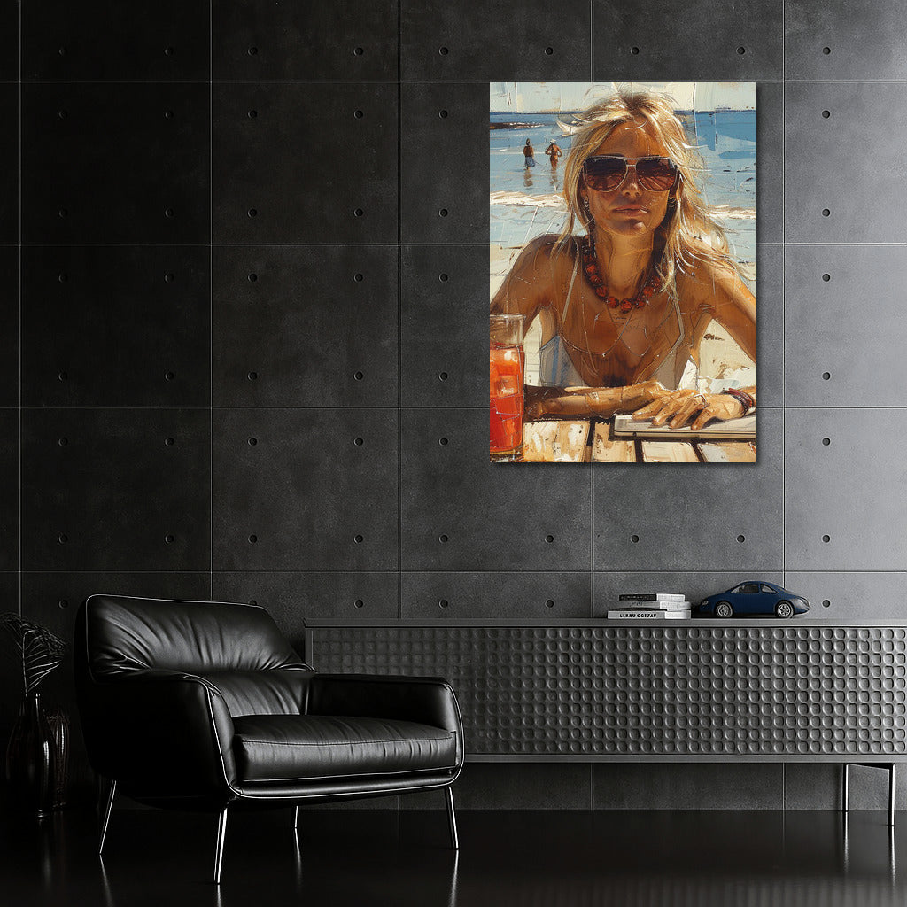 Summer mood: poster with a portrait on the beach. Delicate colors and lightness will create an atmosphere of coziness in your space. See more from the collection: Wall Art with Women