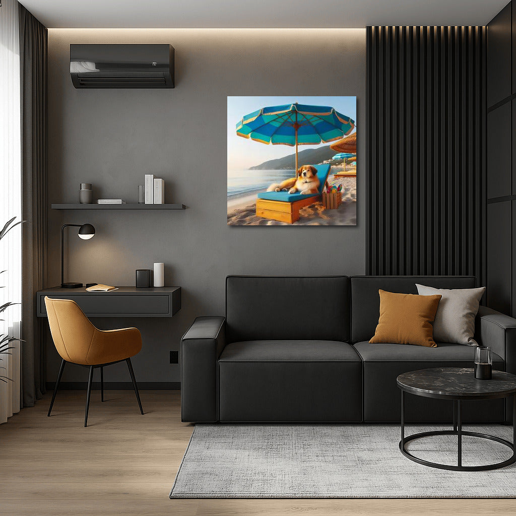 Summer Relaxation: Dog on the Beach under an Umbrella Wall Art