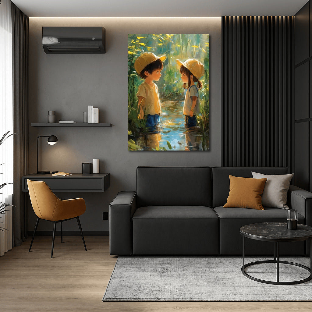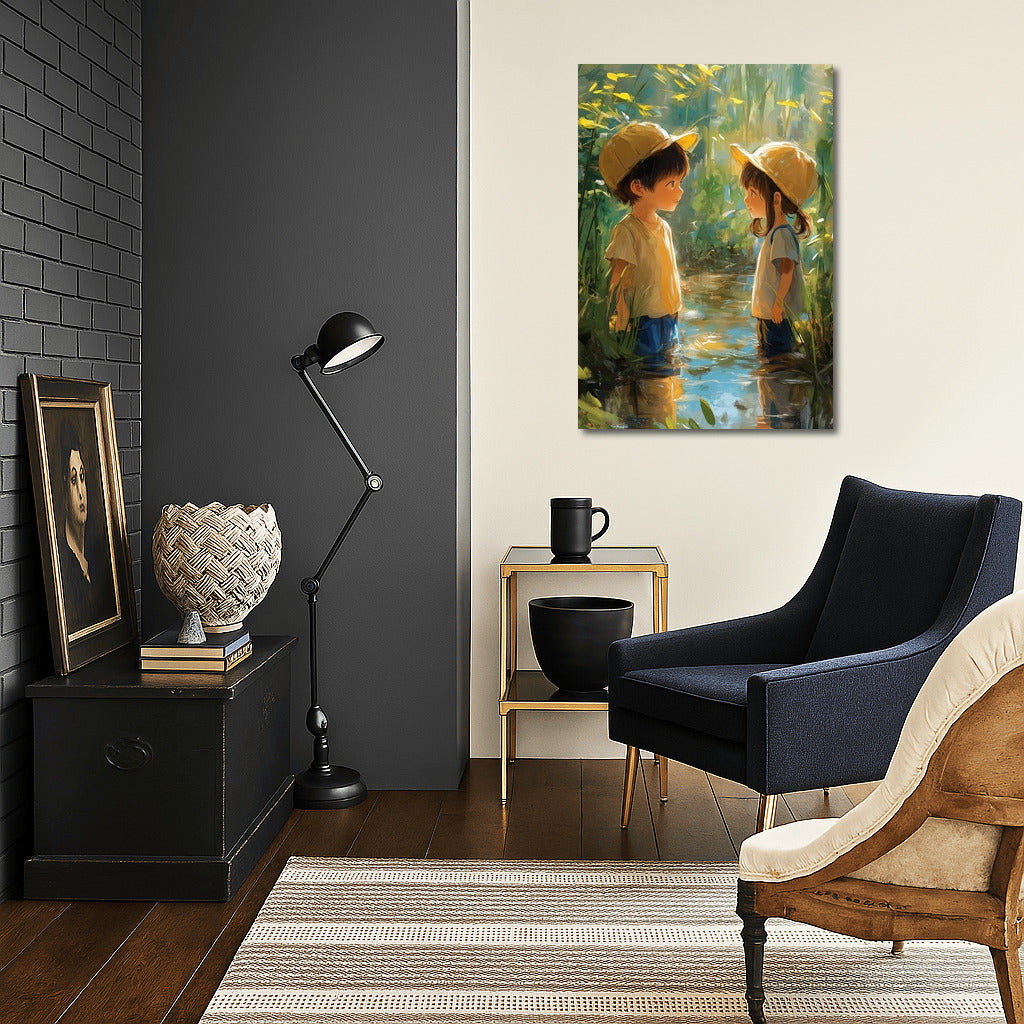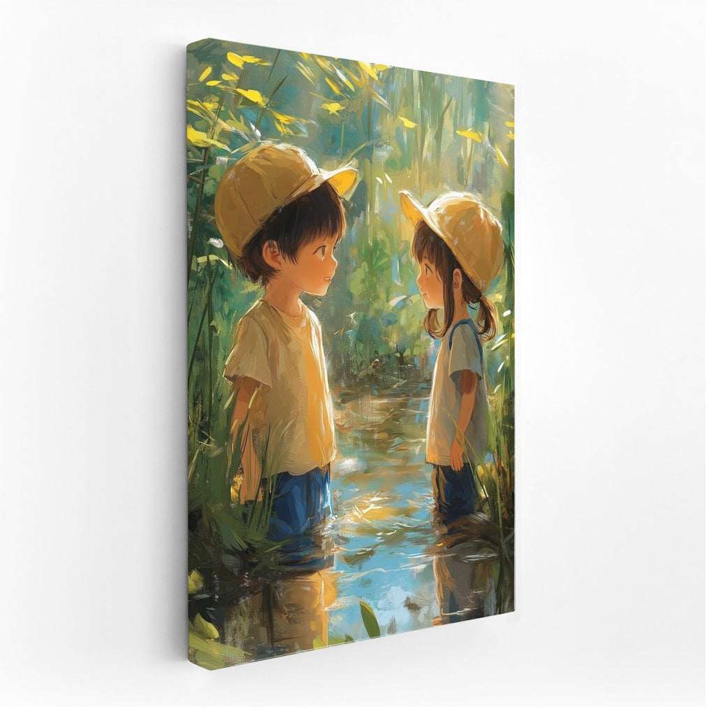 Two friends greet summer in a green oasis. This poster will fill your home with the warmth and joy of childhood! See more from the collection: Cartoon Art