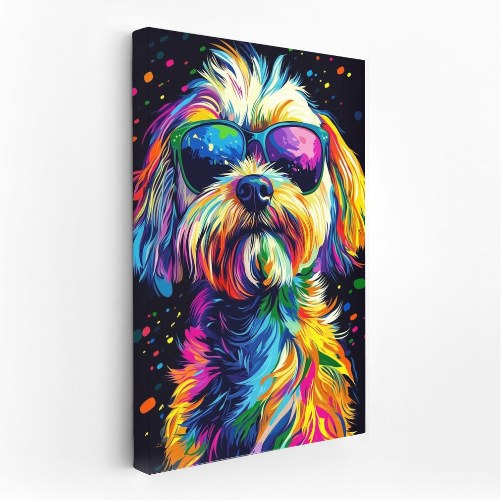 Bright pop art poster: a stylish dog in sunglasses will liven up any interior! Wall art for a cheerful mood. See more from the collection: Animals Art