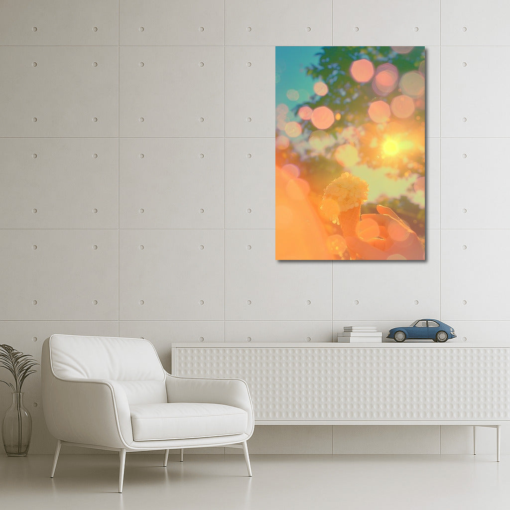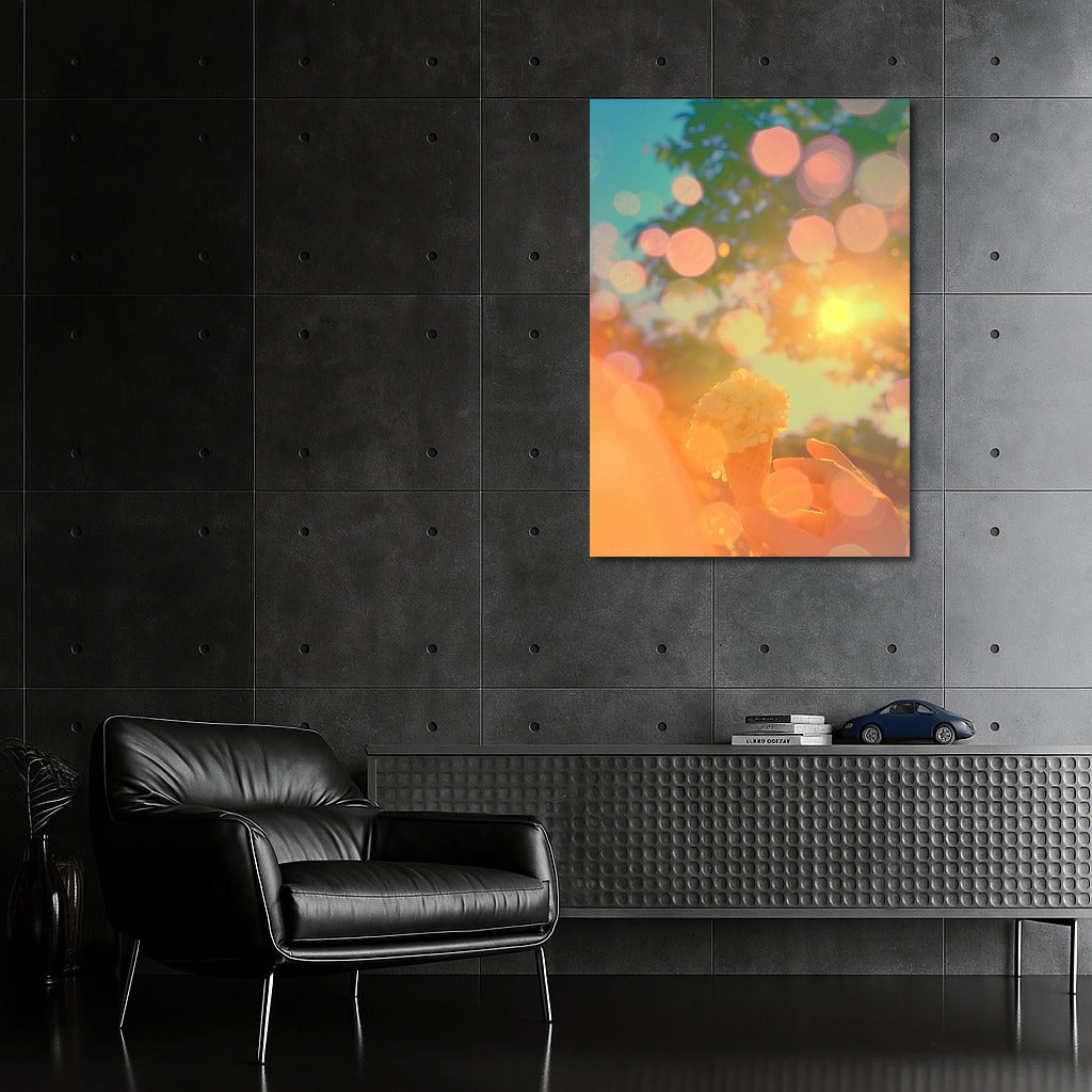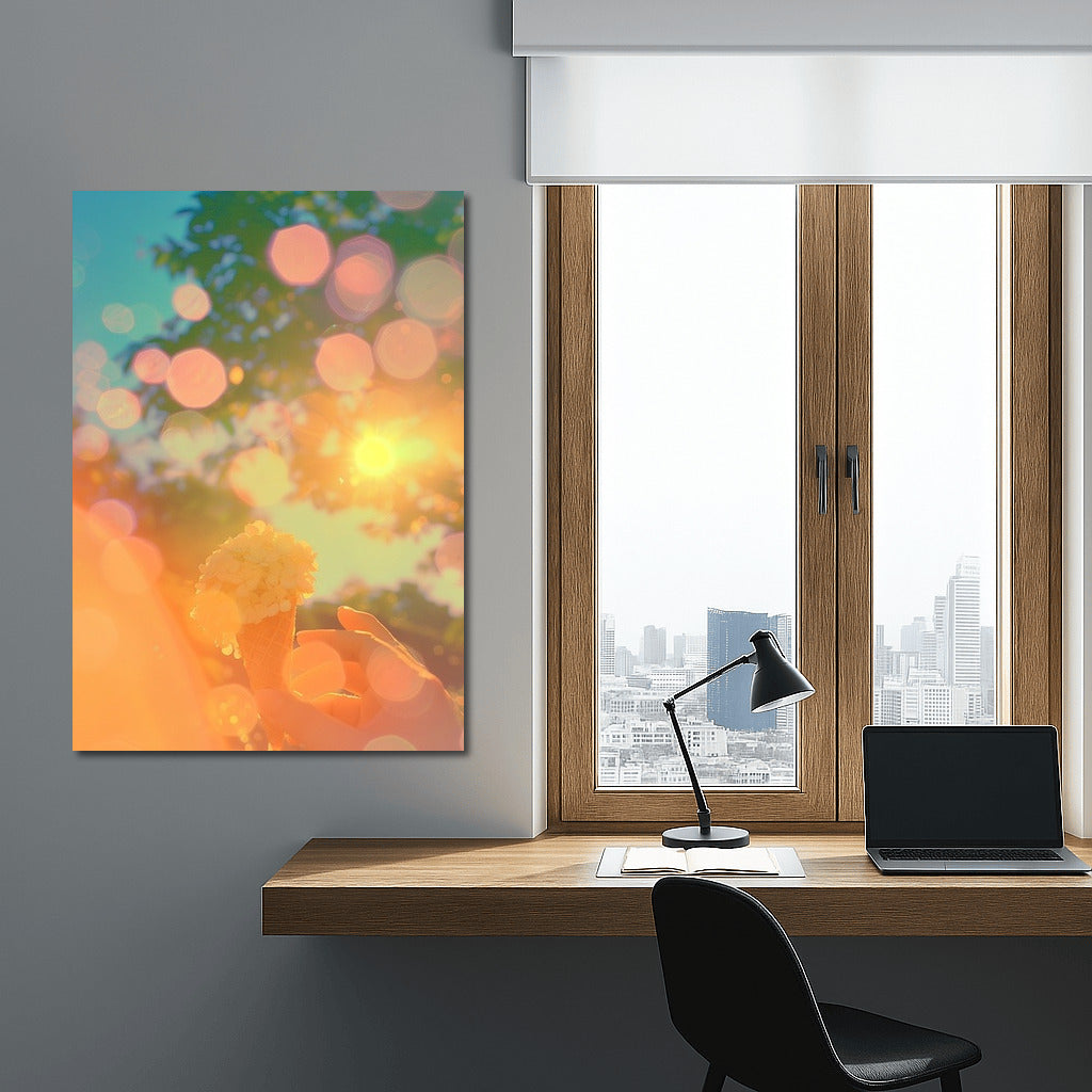 Summer magic in every ray: a poster-illusion with an ice cream-kiss of the sun. Wall art where light plays with color. See more from the collection: Mixed Wall Art
