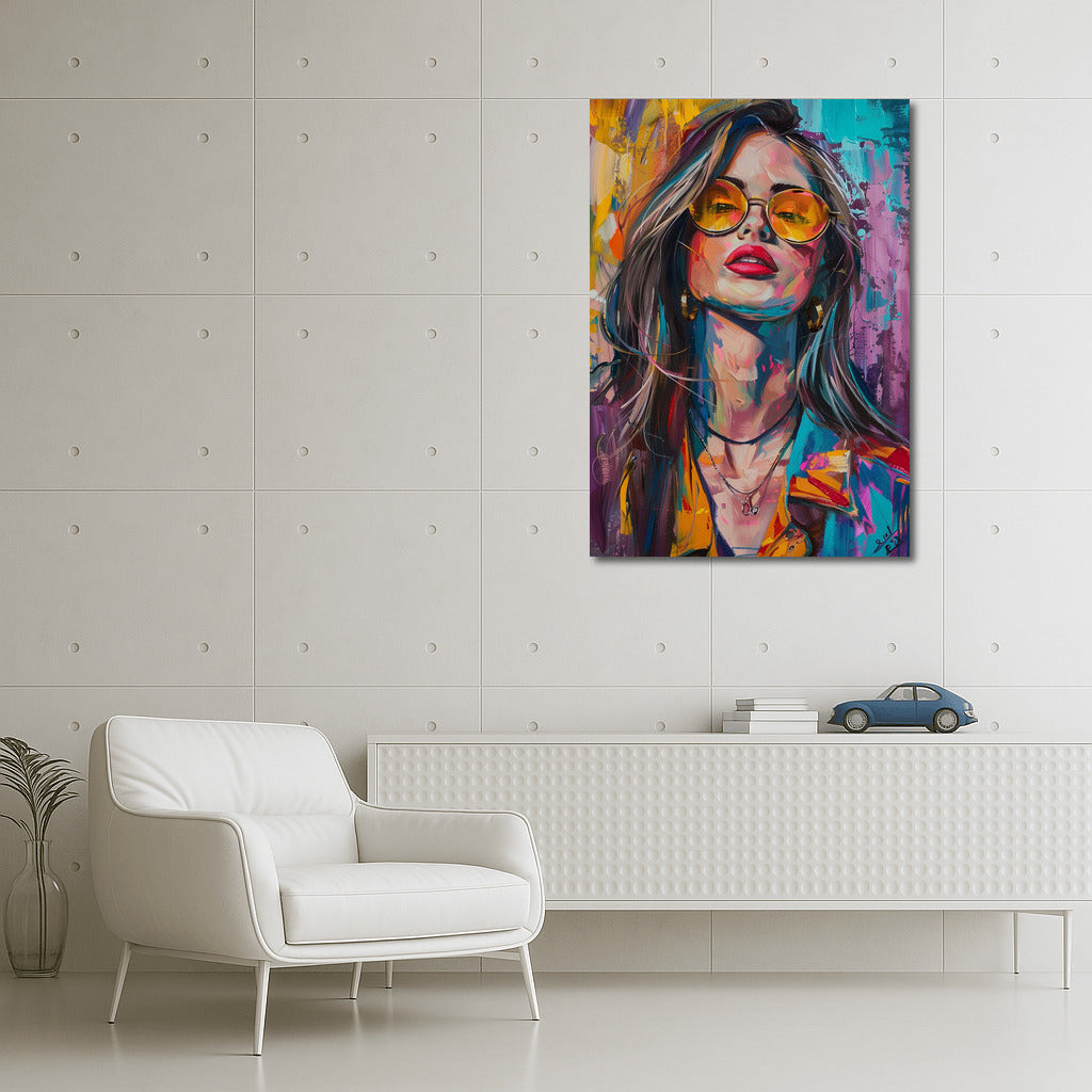 Sunny Boldness: Spectacular Woman in Glasses Wall Art