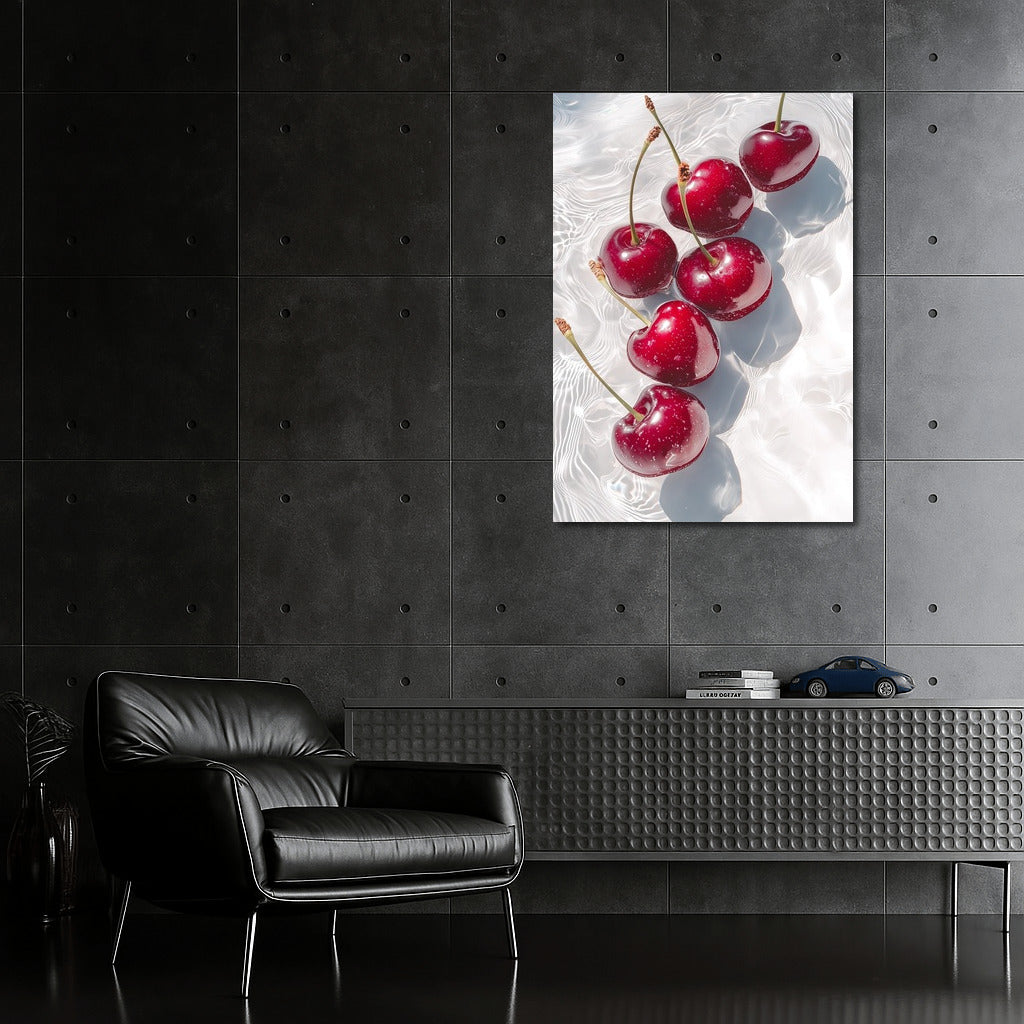 A bright poster with juicy cherries in the sunlight will add freshness and lightness to your wall art! See more from the collection: Food Art