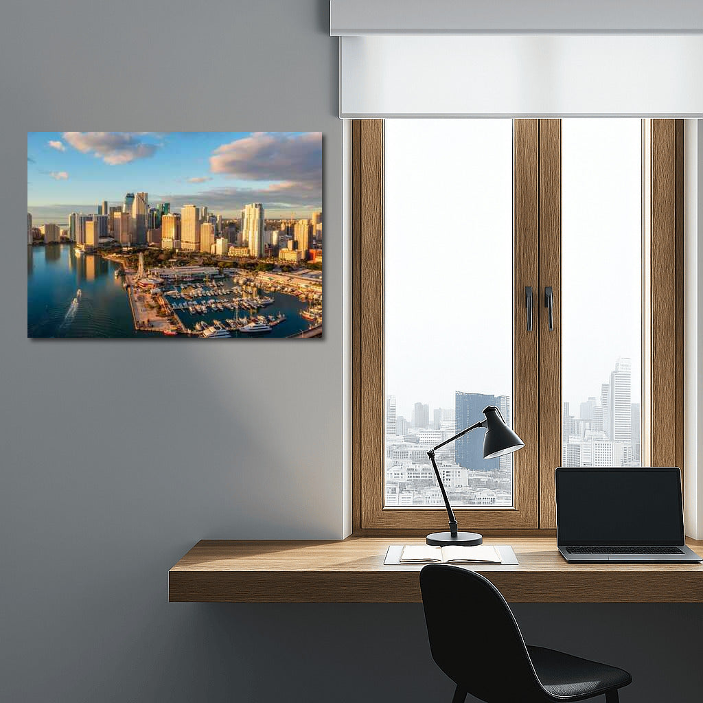 Immerse yourself in the sunny Miami atmosphere with this painting. Perfect wall art from the Cityscapes Skylines category. See more from the collection: Cityscapes & Skylines Art
