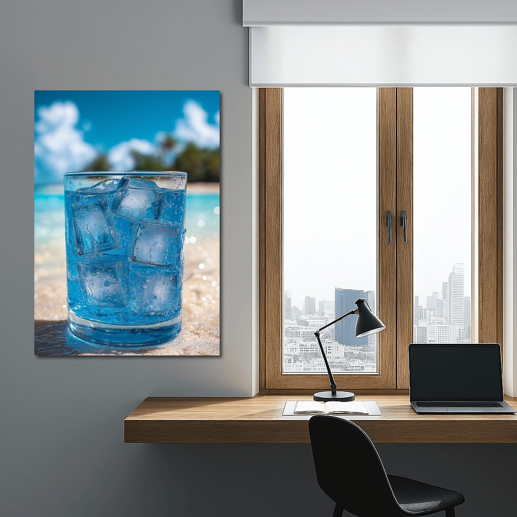 Refreshing art poster: ice cold drink in the sun on the beach. Wall art for your summer mood! See more from the collection: Coffee & Tea Art & Drinks