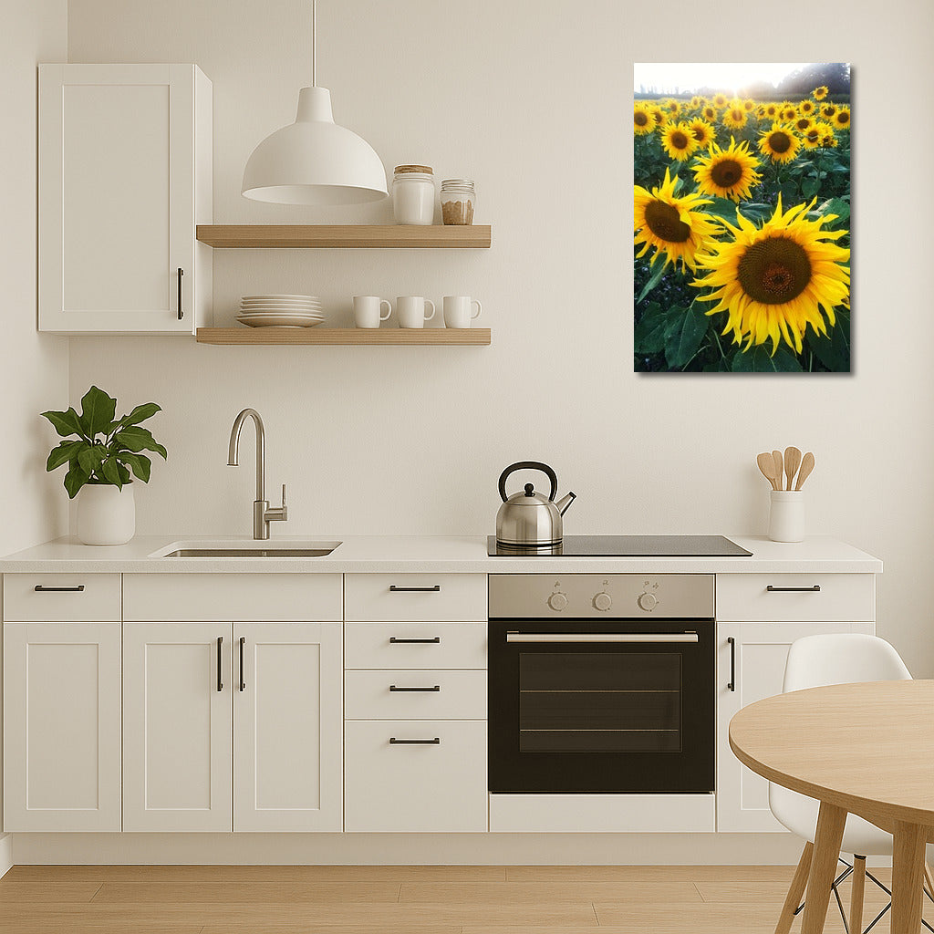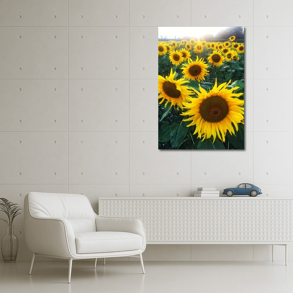 Vibrant wall art: A field of sunny sunflowers will brighten up your interior. This poster is a breath of summer in your home. See more from the collection: Flowers Art