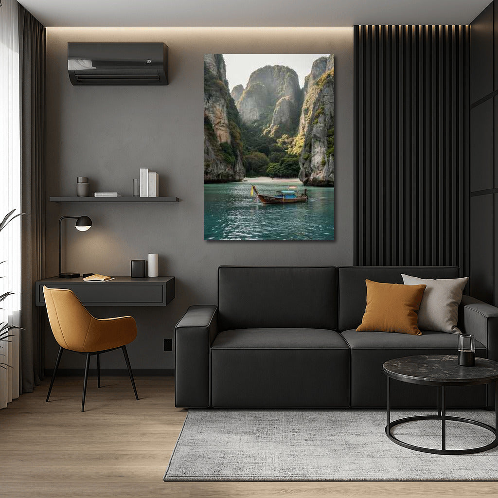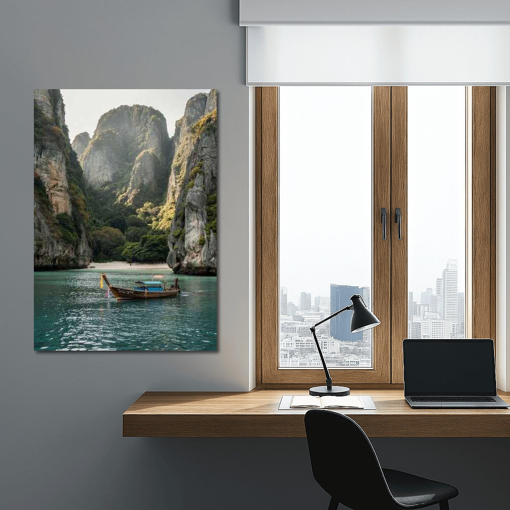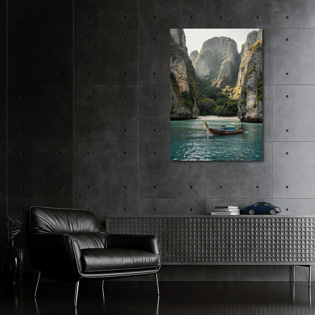 Thai coast in the sun rays - a spectacular painting for your home. Immerse yourself in the serenity of nature with this poster. See more from the collection: Country Art