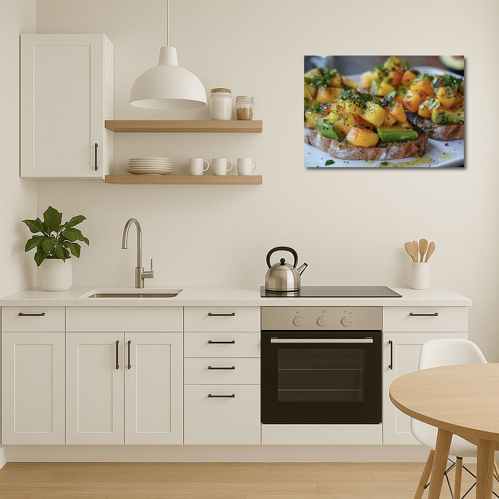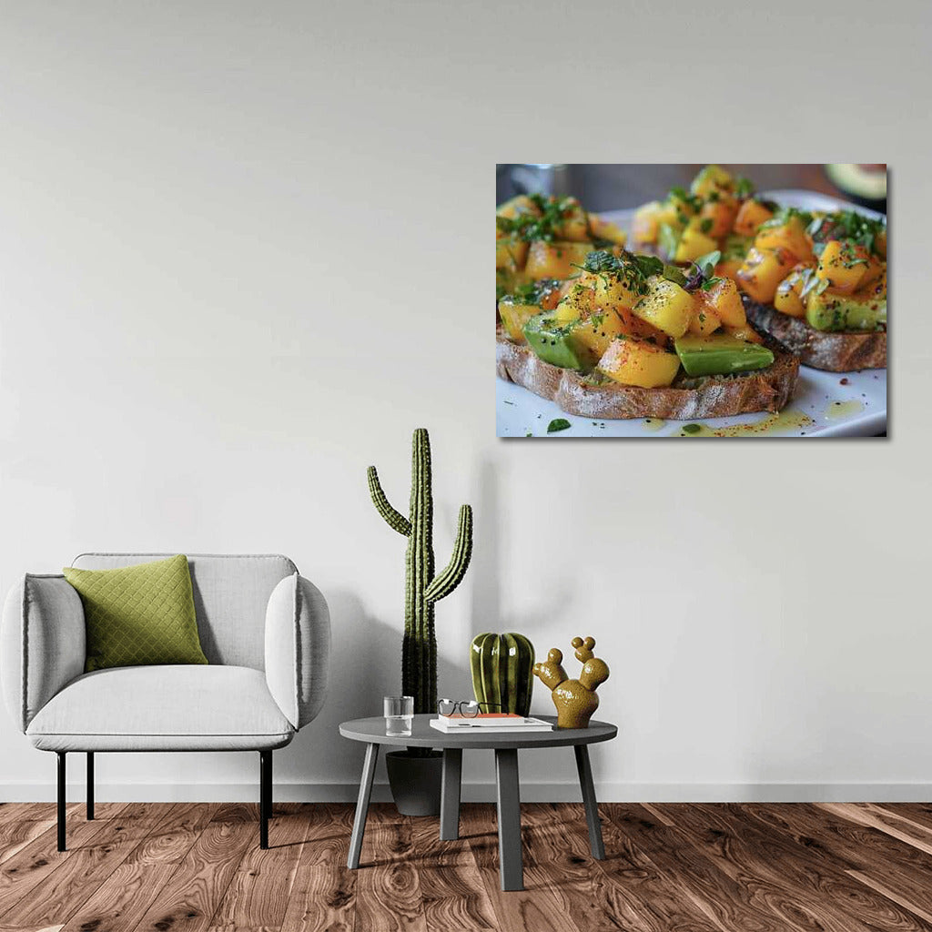 The mango and avocado toast in this painting creates a sunny, festive mood. The perfect accent for your wall art! See more from the collection: Food Art