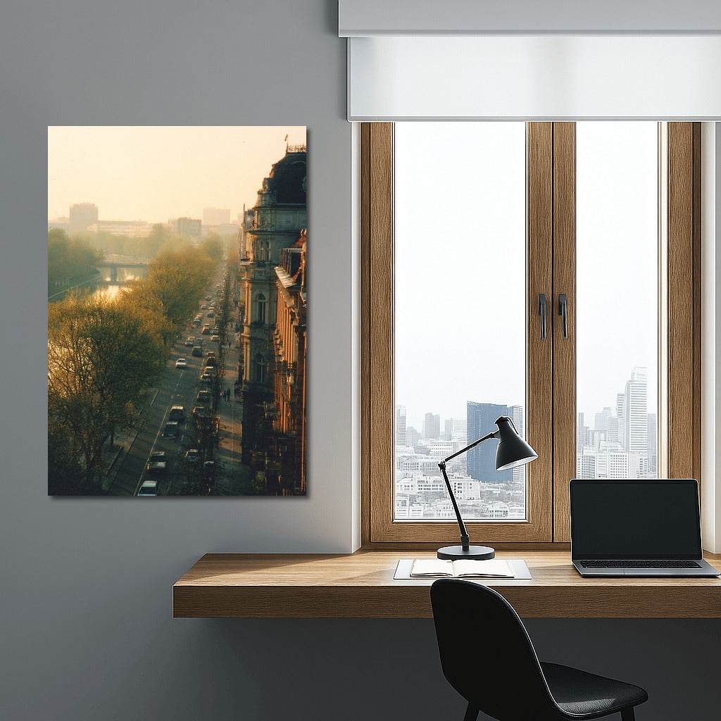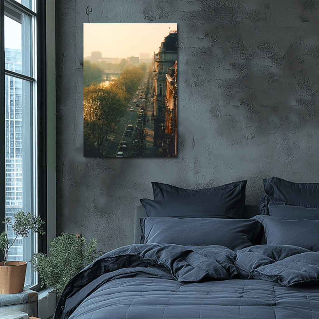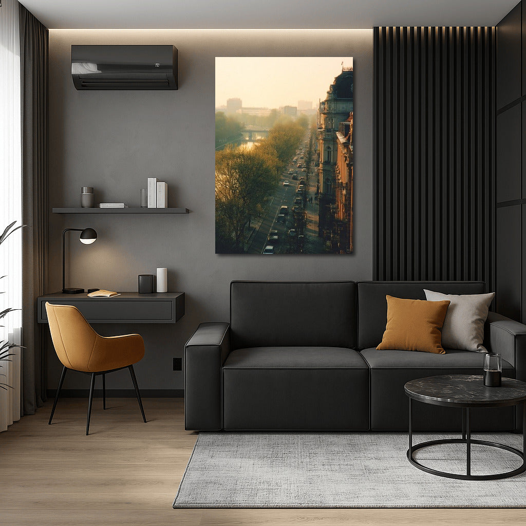 Berlin is wrapped in the glow of the sunset. This poster will bring the atmosphere of the city landscape into your interior. Wall art! See more from the collection: Berlin, Germany Art