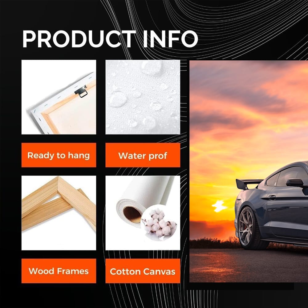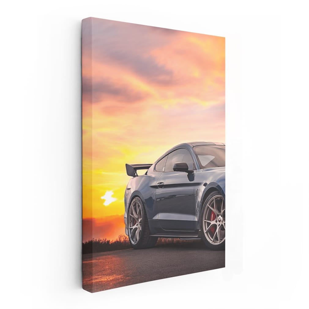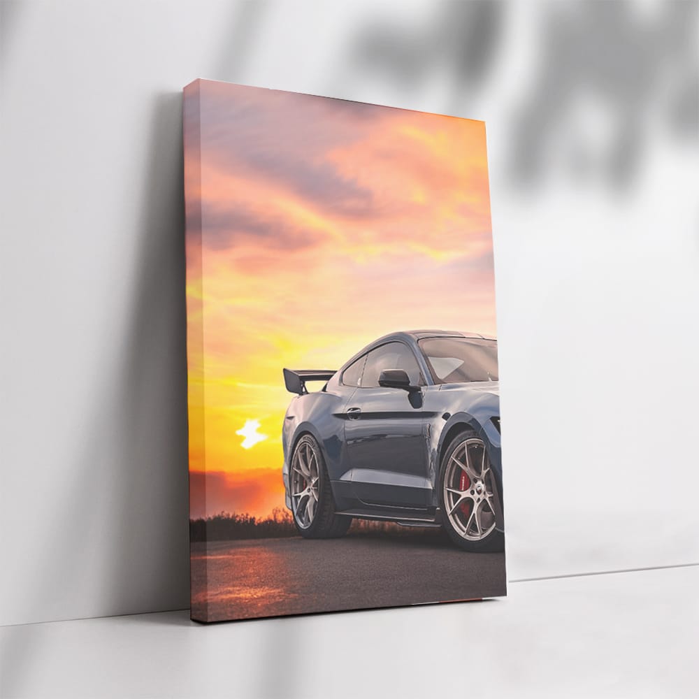 Dude, this poster is just fire! Mustang in the sunset light is the bomb. A painting where power and style merge. This is wall art for those who live life to the max. Just hang it and enjoy the view that always charges you. See more from the collection: Ford Art